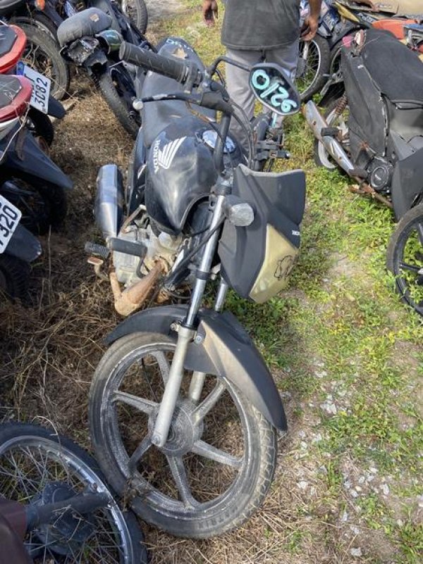 HONDA/CG 150 TITAN EX, ANO/MOD 2011/2012, COR PRETA, COMBUS ALCOOL/GASOLINA, PLACA OHC5259-AL, RENAVAM 391469037, CHASSI 9C2KC1660CR515710, Nº MOTOR KC16E6C515710. OBSERVAÇÕES: PLACA DANIFICADA, BANCO RASGADO, CARENAGENS COM DANOS, GUIDÃO COM MUDANÇAS DE CARACTERÍSTICAS, VEÍCULO COM DANOS NA PARTE EXTERNA, REGULARIZAÇÃO POR CONTA DO COMPRADOR).