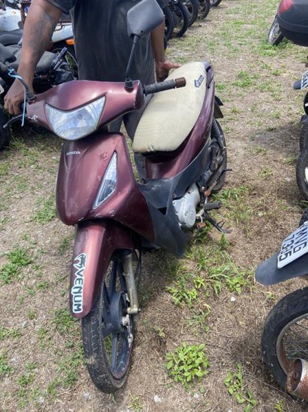 HONDA/POP100, ANO/MOD 2012/2012, COR ROXA, COMBUS GASOLINA, PLACA OHF7665-AL, RENAVAM 473257890, CHASSI 9C2HB0210CR456128, Nº MOTOR HB02E1C456128. OBSERVAÇÕES: PLACA DANIFICADA, RETROVISORES E LACRE AUSENTES, LANTERNA E PAINEL QUEBRADOS, PAINEL COM AVARIAS, VEÍCULO COM DANOS NA PARTE EXTERNA, REGULARIZAÇÃO POR CONTA DO COMPRADOR).