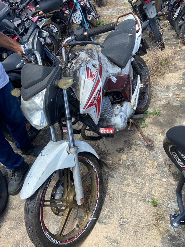HONDA/CG 150 TITAN EX, ANO/MOD 2013/2013, COR VERMELHA, COMBUS ALCOOL/GASOLINA, PLACA ORL3540-AL, RENAVAM 597279233, CHASSI 9C2KC1660DR537236, Nº MOTOR KC16E6D537236. OBSERVAÇÕES: LACRE DA PLACA VIOLADO, BANCO RASGADO, TANQUE COM MOSSAS, CARENAGENS DIREITA AUSENTE, VEÍCULO COM DANOS NA PARTE EXTERNA, REGULARIZAÇÃO POR CONTA DO COMPRADOR).