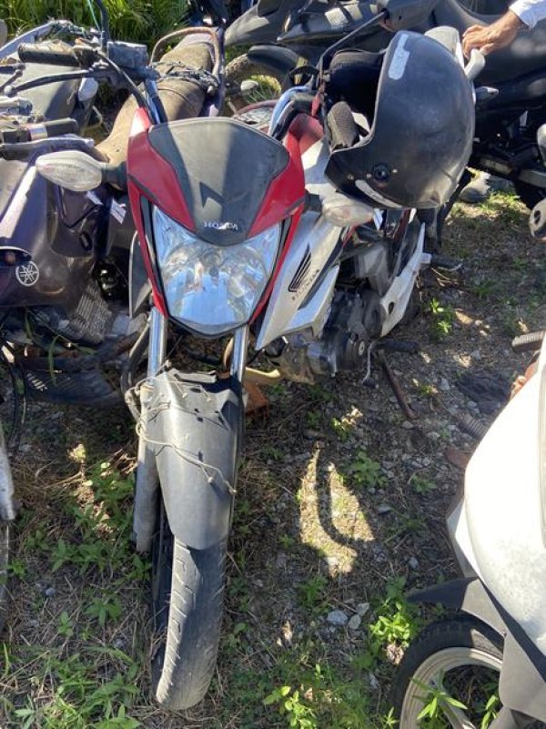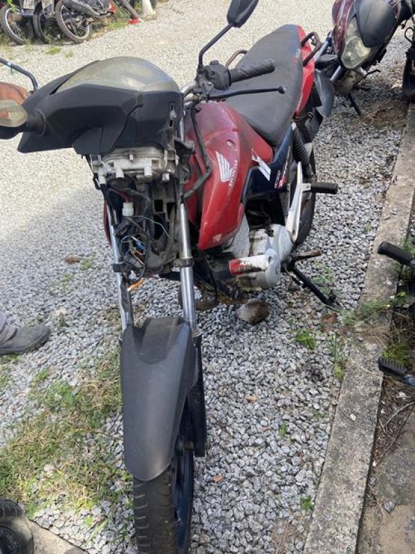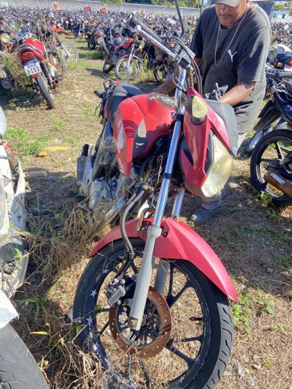 HONDA/CG150 FAN ESDI, ANO/MOD 2013/2014, COR VERMELHA, COMBUS ALCOOL/GASOLINA, PLACA OHH4947-AL, RENAVAM 568928113, CHASSI 9C2KC1680ER405077, Nº MOTOR KC16E8E405077. OBSERVAÇÕES: PLACA DANIFICADA, BANCO RASGADO, TANQUE COM MOSSAS, RETROVISOR ESQUERDO, FAROL E PAINEL QUEBRADOS, VEÍCULO COM DANOS NA PARTE EXTERNA, REGULARIZAÇÃO POR CONTA DO COMPRADOR).