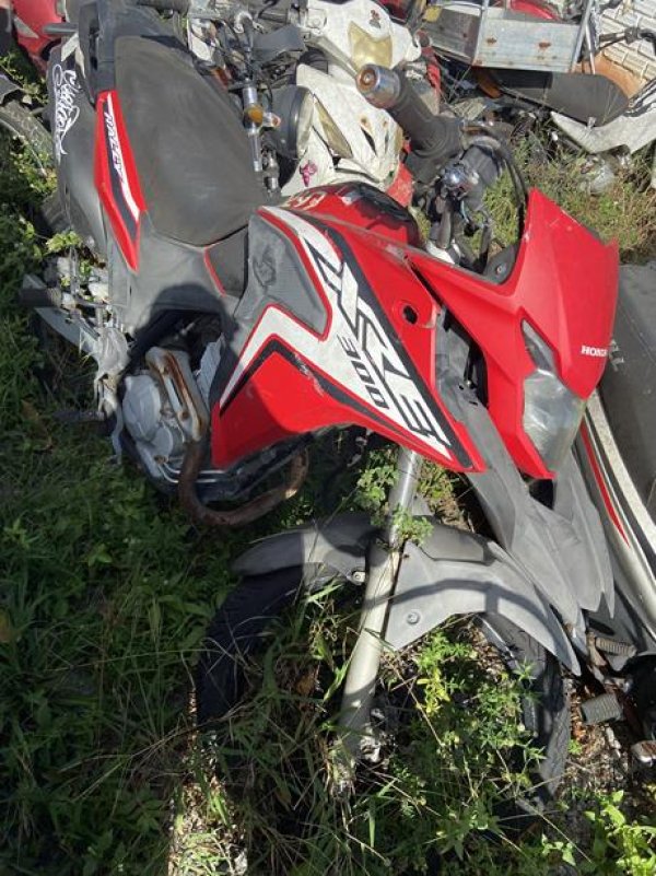 HONDA/XRE 300 ABS, ANO/MOD 2019/2019, COR VERMELHA, COMBUS ALCOOL/GASOLINA, PLACA OXN2E24-AL, RENAVAM 1184110848, CHASSI 9C2ND1120KR201394, Nº MOTOR ND11E2K201403. OBSERVAÇÕES: PLACA DANIFICADA, RETROVISORES AUSENTES, VEÍCULO COM DANOS NA PARTE EXTERNA, REGULARIZAÇÃO POR CONTA DO COMPRADOR).