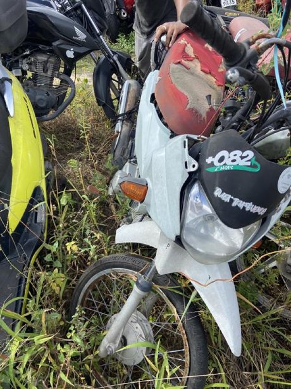 HONDA/POP100, ANO/MOD 2010/2010, COR VERMELHA, COMBUS GASOLINA, PLACA QLG7C38-AL, RENAVAM 1101030957, CHASSI 9C2HB0210AR546240, Nº MOTOR HB02E1A546240. OBSERVAÇÕES: BANCO RASGADO, VEÍCULO COM DANOS NA PARTE EXTERNA, REGULARIZAÇÃO POR CONTA DO COMPRADOR).