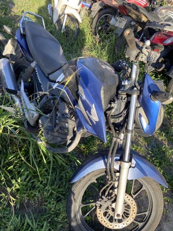 HONDA/CG 160 TITAN, ANO/MOD 2023/2024, COR AZUL, COMBUS ALCOOL/GASOLINA, PLACA RGV2A39-AL, RENAVAM 1365060770, CHASSI 9C2KC2210RR003606, Nº MOTOR KC22E1R003728. OBSERVAÇÕES: RETROVISORES AUSENTES, TANQUE COM MOSSAS, VEÍCULO COM DANOS NA PARTE EXTERNA, REGULARIZAÇÃO POR CONTA DO COMPRADOR).