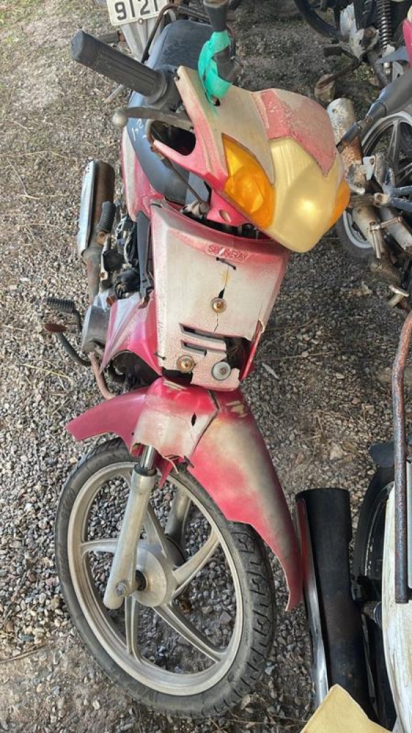 SUNDOWN/WEB 100, ANO/MOD N/I/N/I, COR VERMELHA, COMBUS GASOLINA, PLACA N/I - N/I, RENAVAM N/I, CHASSI N/I, Nº MOTOR N/I, LOC. PÁTIO MACEIÓ (CLASSIFICAÇÃO: SUCATA INSERVÍVEL NÃO IDENTIFICADO). OBSERVAÇÕES: CHASSI DESTRUÍDO, VEÍCULO ORIGINAL NÃO IDENTIFICADO, SUCATA INSERVÍVEL