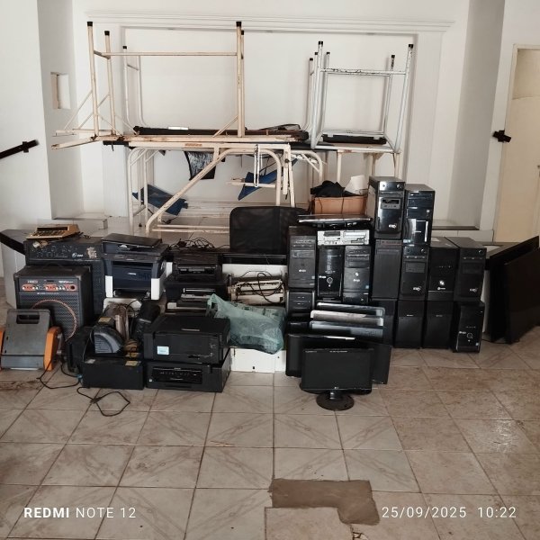 GRANDE QUANTIDADE DE SUCATAS: TELEVISORES, CADEIRAS, ARMARIOS, CARTEIRAS ESCOLARES, BIRÔS, EQUIPAMENTOS DE INFORMATICA, BEBEDOUROS, CADEIRA DE RODA, FOGÃO A GÁS, GELADEIRA E ETC.