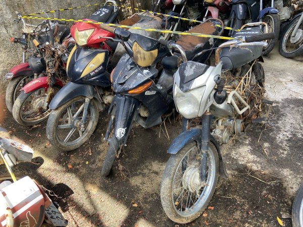 HONDA/CG 150 TITAN KS, COR PRETA, ANO/MOD 2008/2008, PLACA IAI2487 - SE, RENAVAM 987141490, CHASSI 9C2KC08108R271696, Nº MOTOR KC08E18271696 (SUCATA APROVEITÁVEL - MOTOR SERVÍVEL). // YAMAHA/YBR 125K, COR PRETA, ANO/MOD 2005/2006, PLACA MNN7172 - PB, RENAVAM 925963038, CHASSI 9C6KE092060000116, Nº MOTOR E382E-000961 (SUCATA APROVEITÁVEL - MOTOR SERVÍVEL). // YAMAHA/YBR 125K, COR VERMELHA, ANO/MOD 2007/2008, PLACA MUS9501 - AL, RENAVAM 955751829, CHASSI 9C6KE092080153202, Nº MOTOR TROCADO (SUCATA INSERVÍVEL - MOTOR INSERVÍVEL). // HONDA/CG 150 TITAN KS, COR VERMELHA, ANO/MOD 2005/2006, PLACA MVG7176 - AL, RENAVAM 870628631, CHASSI 9C2KC08106R823276, Nº MOTOR KC08E16823276 (SUCATA APROVEITÁVEL - MOTOR SERVÍVEL). // HONDA/CG 125 FAN KS, COR VERMELHA, ANO/MOD 2009/2009, PLACA NMH5855 - AL, RENAVAM 153596880, CHASSI 9C2JC41109R041674, Nº MOTOR JC41E19041674 (SUCATA APROVEITÁVEL - MOTOR SERVÍVEL).