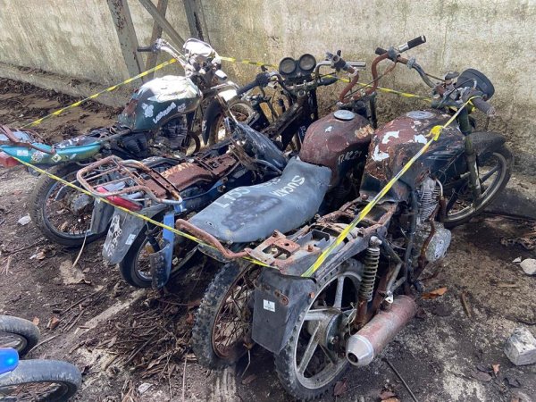 135 - HONDA/CG 125, COR VERDE, ANO/MOD , PLACA S/PLACA248 , CHASSI DESTRUÍDO, Nº MOTOR DESTRUÍDO (SUCATA INSERVÍVEL - MOTOR INSERVÍVEL). // HONDA/...