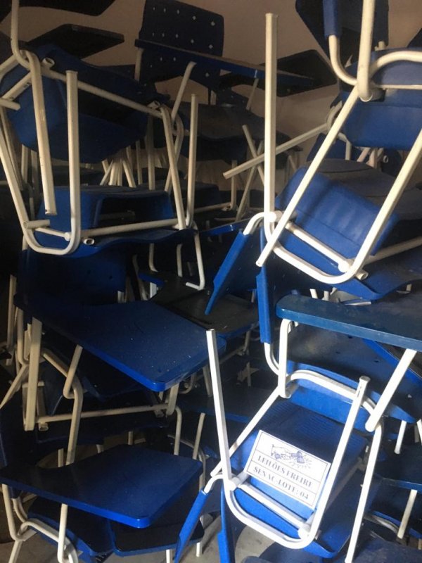 45 CADEIRAS UNIVERSITARIAS, COR AZUL EM POLIPROPILENO.