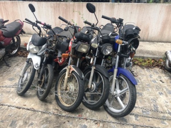 HONDA/CG 125 TITAN KS, PLACA KLK3711, ANO/MOD 2003/2004, COR VERMELHA, CHASSI 9C2JC30104R077538, MOTOR JC30E14077538, UF AL,SUCATA COM MOTOR APROVEITÃVEL, HONDA/CG 125 TITAN ES, PLACA MVB2629, ANO/MOD 2001/2002, COR AZUL, CHASSI 9C2JC30202R102898, MOTOR JC30E22102898, UF AL,SUCATA COM MOTOR APROVEITÃVEL, JTA/SUZUKI AN125, PLACA MVI7358, ANO/MOD 2006/2007, COR VERMELHA, CHASSI 9CDCF47AJ7M011708, MOTOR F472BR111708, UF AL,SUCATA SEM MOTOR APROVEITÃVEL, HONDA/CG 150 TITAN KS, PLACA NMB3020, ANO/MOD 2008/2008, COR VERMELHA, CHASSI 9C2KC08108R356186, MOTOR KC08E18356186, UF AL,SUCATA COM MOTOR APROVEITÃVEL, HONDA/CG150 TITAN MIX ES, PLACA NMH8146, ANO/MOD 2010/2010, COR VERMELHA, CHASSI 9C2KC1620AR051409, MOTOR KC16E2A051409, UF AL,SUCATA COM MOTOR APROVEITÃVEL.