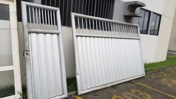 01 PORTÃO DE 6,00 X 2,20, 01 PORTÃO DE 4,70 X 2,20, 02 PORTÕES DE 4,75 X 2,20, 01 PORTÃO DE 4,70 X 2,00, ESTRUTURA SUPERIOR EM ALUMÍNIO E VIGAS DE SUPORTE DE METAL QUADRADO, 05 MOTORES DE PORTÕES ELÉTRICO, 01 GRADE DE PROTEÇÃO EM L MEDINDO 12 X 0,80, 01 GRADE DE METAL MEDINDO 12,00 X 0,80 E 02 TAMPAS DE LIXEIRA EM FERRO.