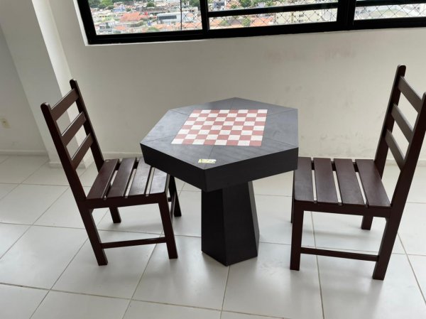 036 - 01 MESA P/ JOGO DE DAMA C/ 02 CADEIRAS.