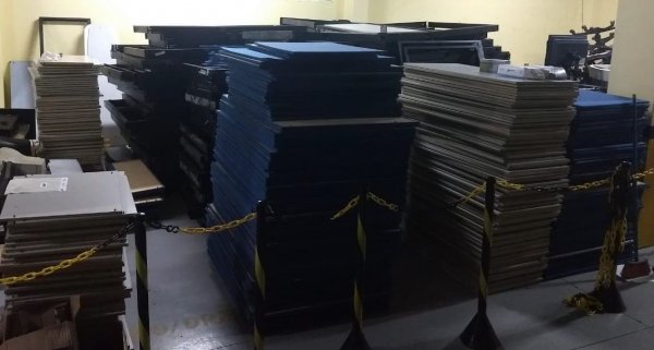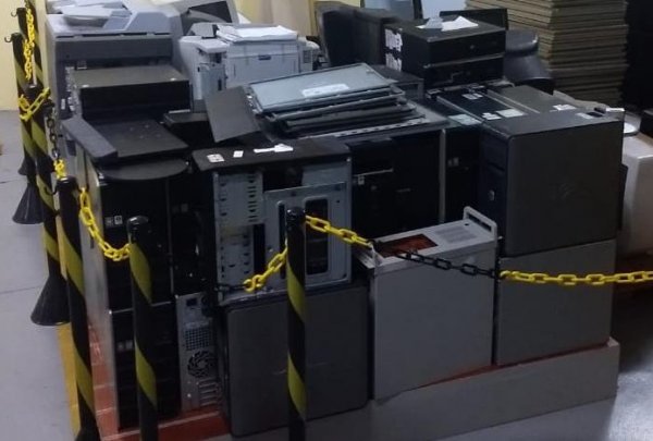 18 Impressoras, 04 Fax, 39 C.P.US, 11 Estabilizadores, 09 Nobreaks, 03 Switch, 12 Monitores, 08 Notebooks, 100 Cartuchos diversos, vazios e/ou com data de validade vencida.