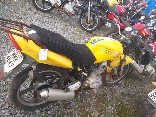 VEÍCULO COM PONTOS DE FERRUGEM, LACRE DA PLACA AUSENTE, PARA-LAMA DIANTEIRO DIREITO COM REPAROS DE FUNILARIA E PINTURA, PARA-CHOQUES E CAIXAS DE AR QUENTE DANIFICADOS, LANTERNAS E RETROVISOR ESQUERDO QUEBRADOS, PARA-LAMAS TRASEIROS E DIANTEIRO ESQUERDO AMASSADOS, TAMPA DA MALA, PORTAS, LATERAIS E TETO COM RISCOS E MOSSAS, ETIQUETA DO COMPARTIMENTO DO MOTOR ILEGIVEL, PARA-BRISAS TRINCADO, VIDRO LATERAL DIREITO AUSENTE, CÂMBIO SEM ACESSO,  REGULARIZAÇÃO POR CONTA DO COMPRADOR.