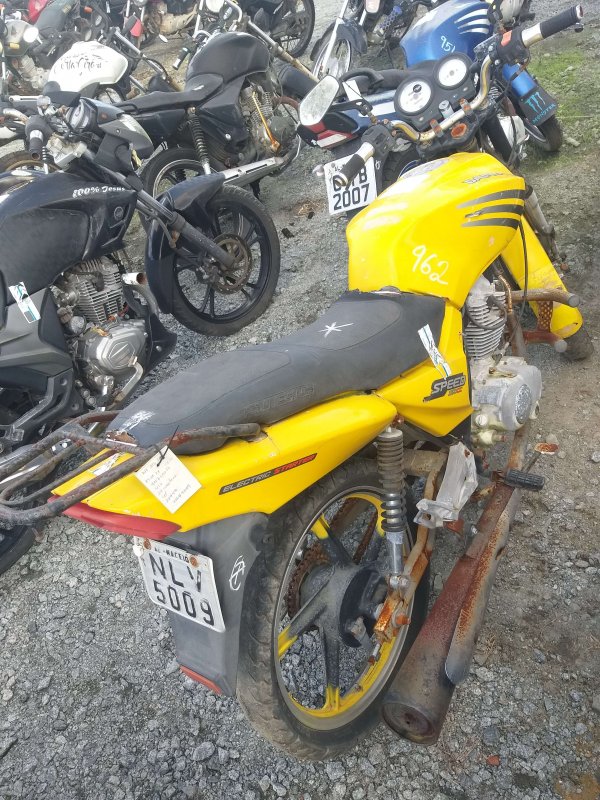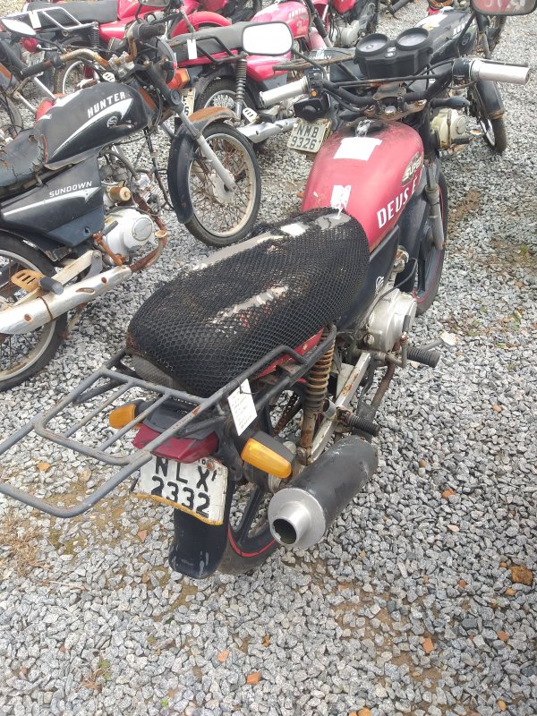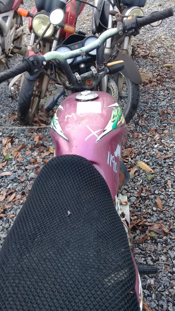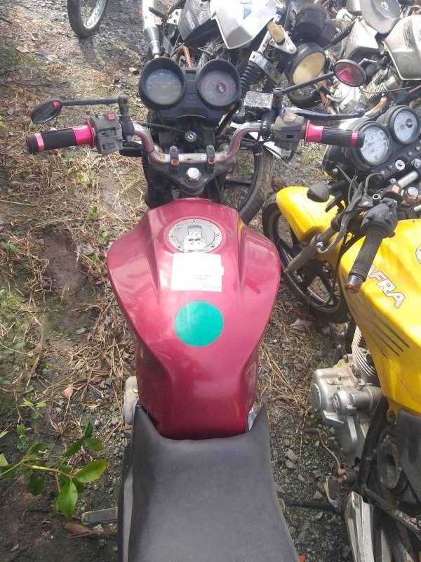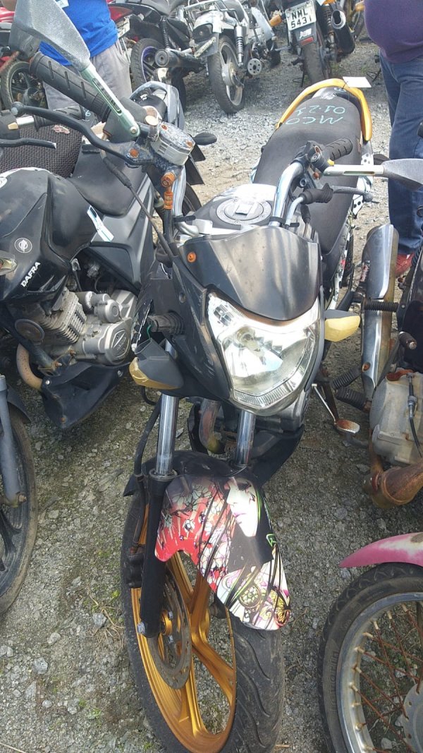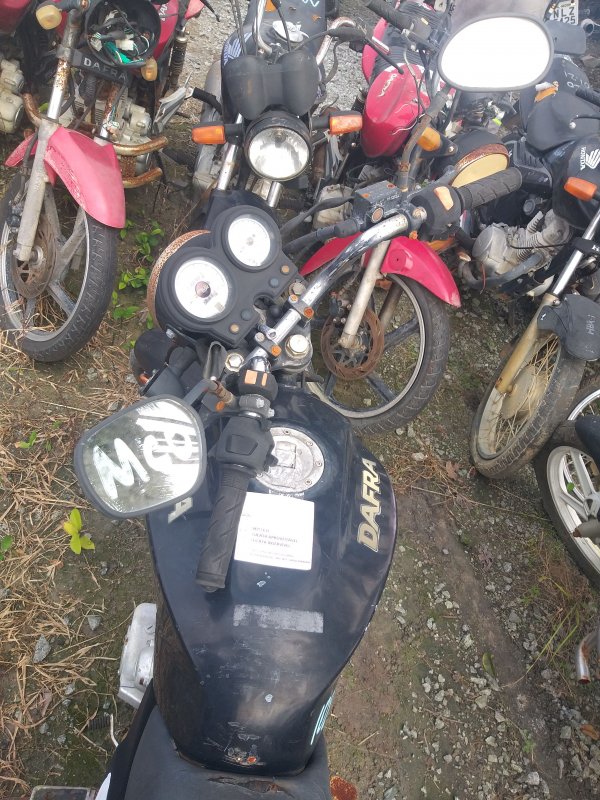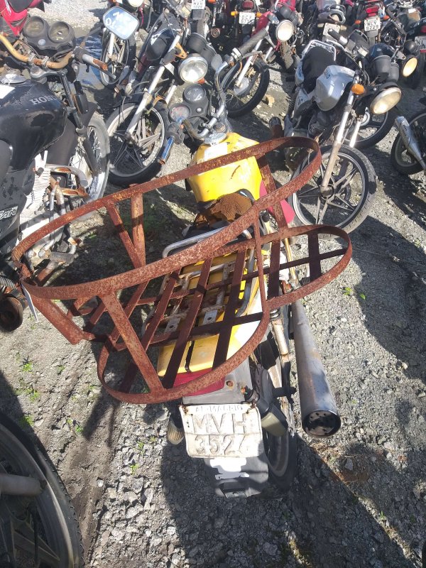 PLACA, CARENAGENS, PAINEL, FAROL, PISCAS DIANTEIRO, PARA-LAMA E LANTERNA DANIFICADOS, TANQUE COM MOSSAS, LACRE ROMPIDO, CARENAGEM TRASEIRA DIREITA, RETROVISOR DIREITO E PISCAS TRASEIRO AUSENTES, CHASSI EM ESTADO INICIAL DE OXIDAÇÃO, DECALQUE LEGÍVEL, TRATAMENTO E REGULARIZAÇÃO POR CONTA DO COMPRADOR.