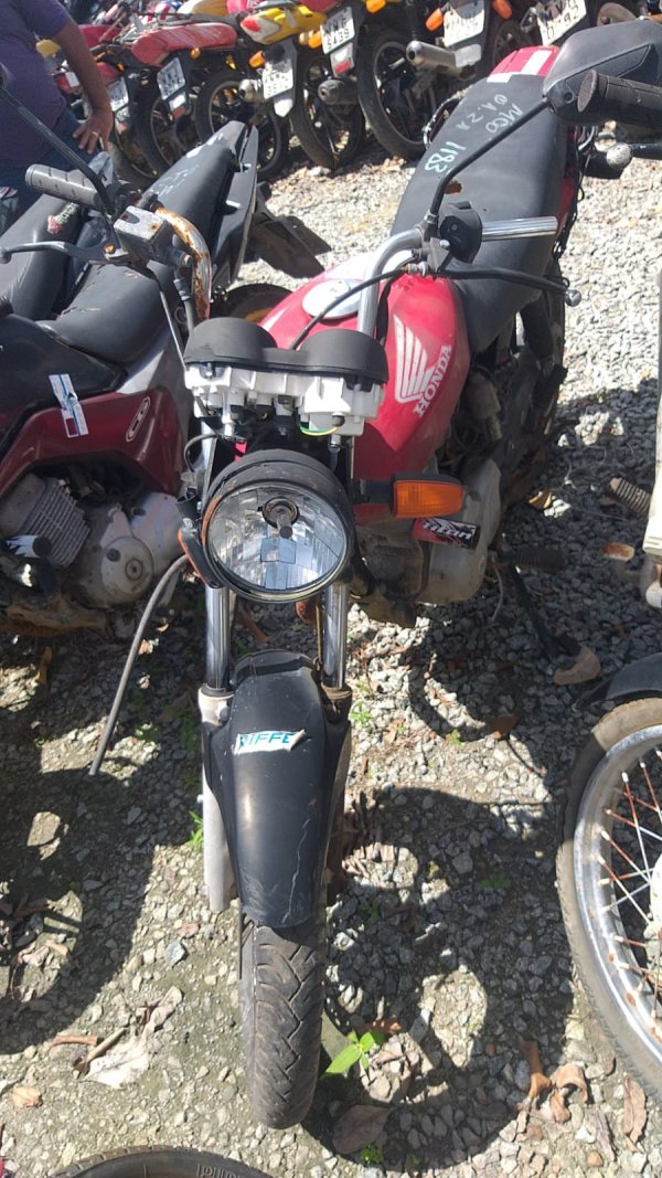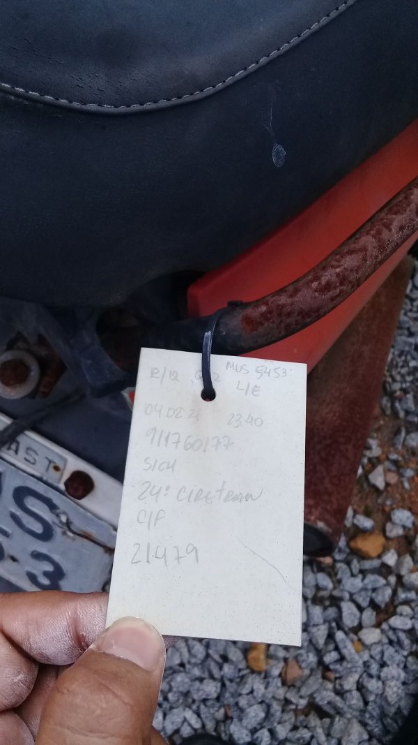 PLACA DANIFICADA, CARENAGENS LATERAL ESQUERDA, FAROL, PISCA DIANTEIRO E TRASEIRO ESQUERDO, RETROVISORES E CARENAGENS TRASEIRAS AUSENTES, SEXTO DÍGITO DO MOTOR DANIFICADO, SEM CARACTERIZAR ADULTERAÇÃO, DECALQUE LEGÍVEL, CHASSI EM ESTADO INICIAL DE OXIDAÇÃO, DECALQUE LEGÍVEL, TRATAMENTO, REMARCAÇÃO E REGULARIZAÇÃO POR CONTA DO COMPRADOR.