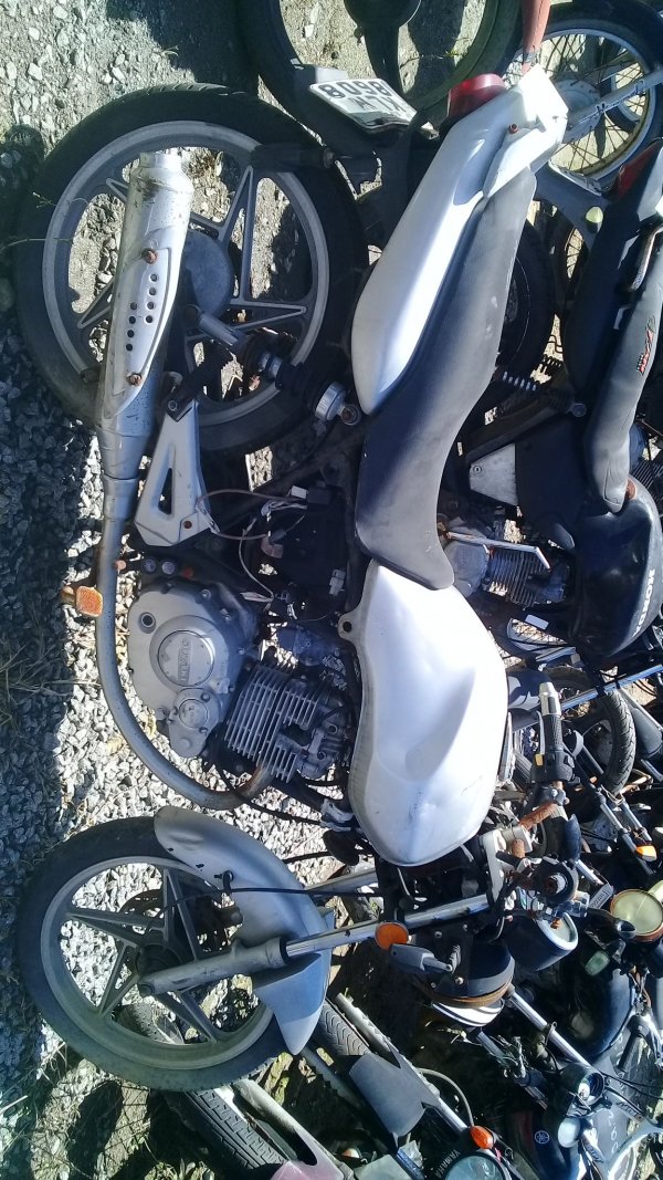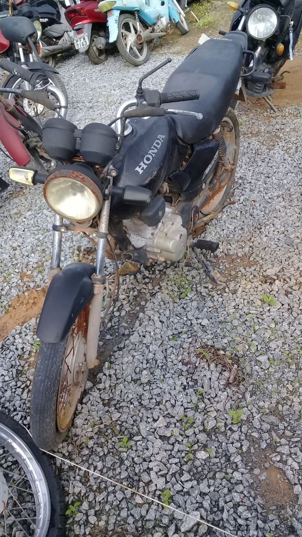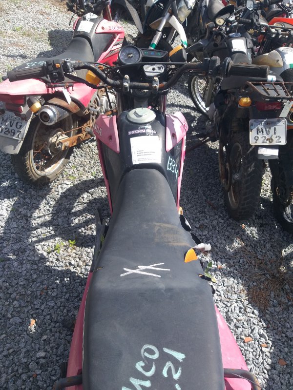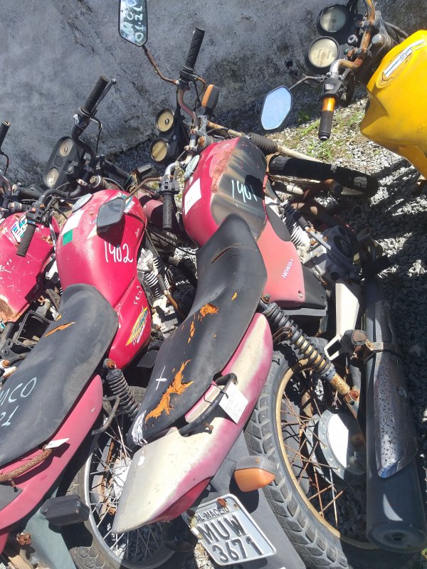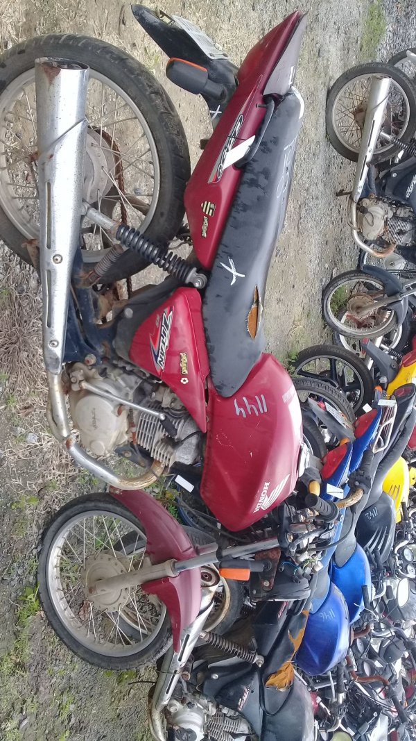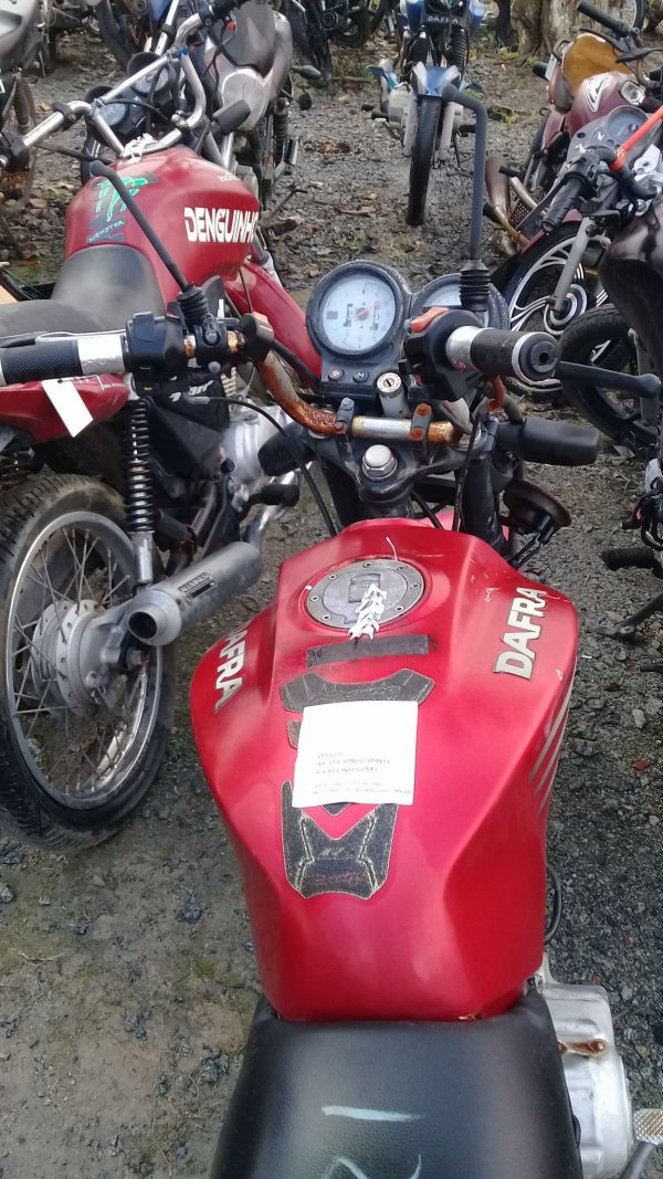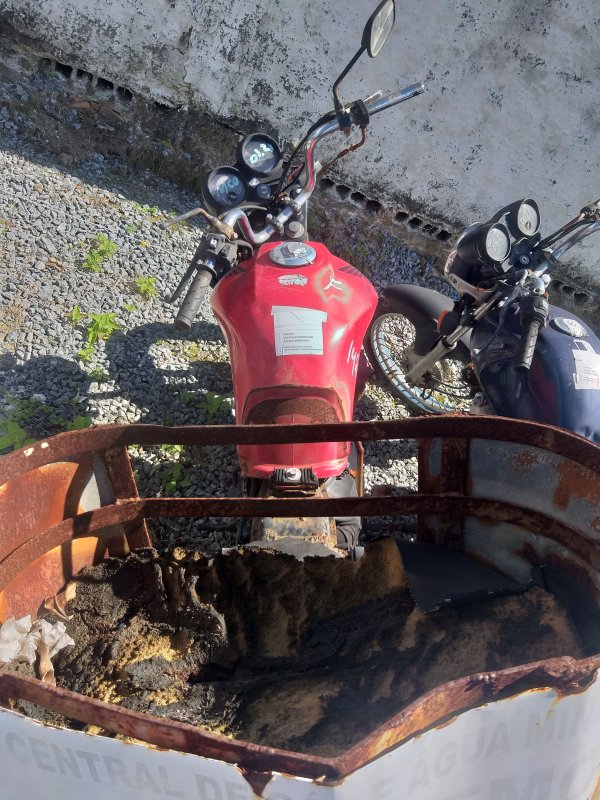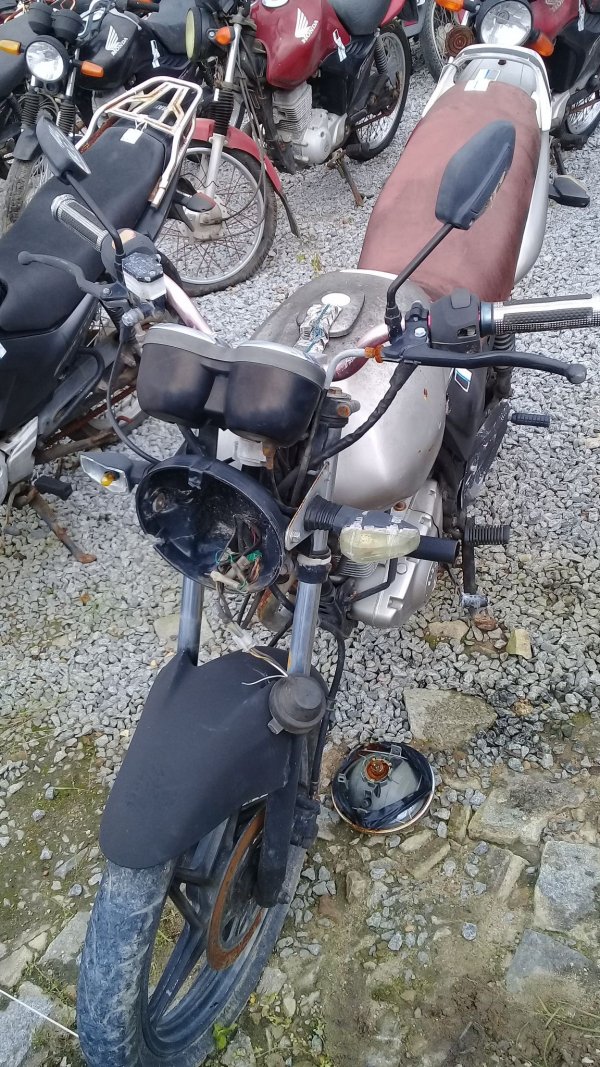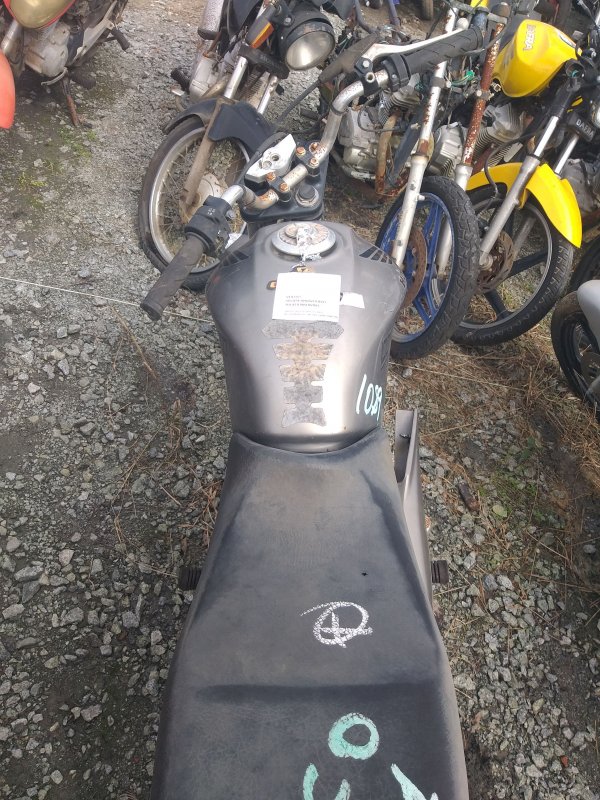 LACRE DA PLACA ROMPIDO, TANQUE AMASSADO, CARENAGEM LATERAL ESQUERDA, PAINEL E BANCO DANIFICADOS, PISCAS TRASEIROS E CARENAGEM LATERAL DIREITA AUSENTES, CHASSI EM ESTADO INICIAL DE OXIDAÇÃO, DECALQUE LEGÍVEL, REGULARIZAÇÃO E TRATAMENTO POR CONTA DO COMPRADOR.