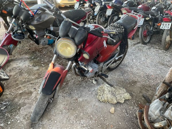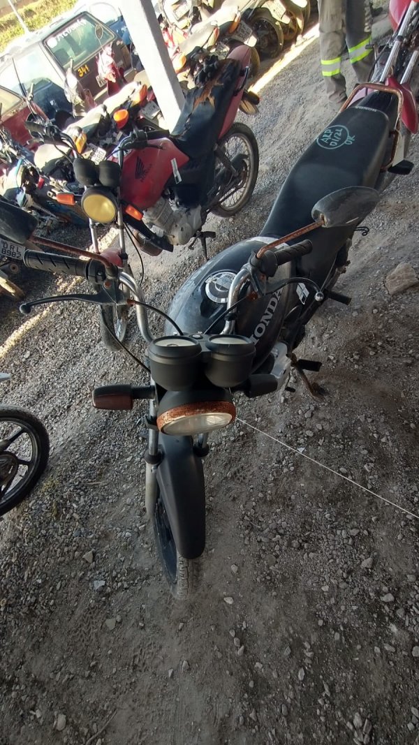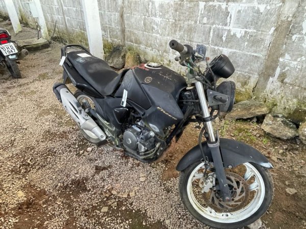 VEÍCULO COM MUDANÇAS DE CARACTERÍSTICAS, LACRE DA PLACA ROMPIDO, BANCO DANIFICADO, TANQUE COM RISCOS E MOSSAS, CARENAGENS TRASEIRAS, RETROVISORES E TAMPA DO MOTOR AUSENTES,  CHASSI EM ESTADO AVANÇADO DE OXIDAÇÃO, DECALQUE LEGÍVEL,REGULARIZAÇÃO, TRATAMENTO OU  REMARCAÇÃO POR CONTA DO COMPRADOR.