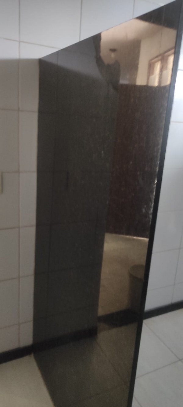 03 BACIAS SANITÁRIAS COM ASSENTOS PLÁSTICOS, 01 BALCÃO DE GRANITO VERDE C/ 02 CUBAS E TORNEIRAS EM PLÁSTICO, 01 PIA DE PAREDE C/ TORNEIRA E 01 JANELA BASCULANTE DE 0.30 X 0.
