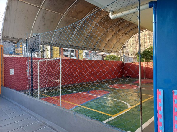 2 TRAVES FUTSAL INFANTIL, 1 TELA DE PROTEÇÃO, TOLDO, 2 REFLETORES, 1 LUMINÁRIA DE POSTE COM BRAÇO E BANDEIJA, 2 CESTA DE BASQUETE, 2 TELAS DE PROTEÇÃO EM ALUMÍNIO.
