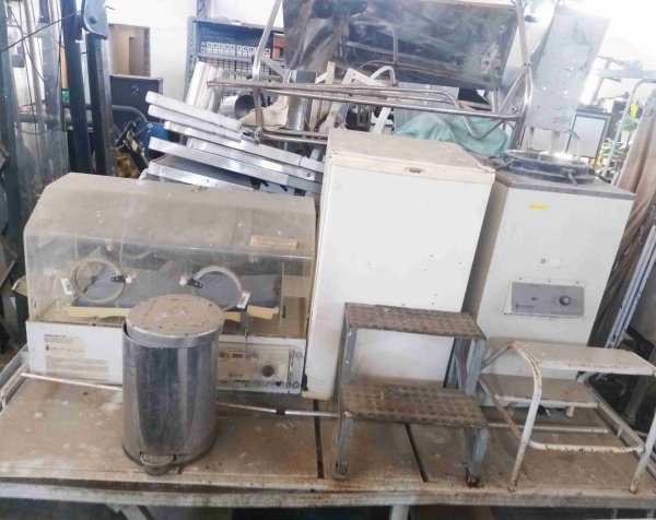 DIVERSAS CÂMERAS DE VIGILÂNCIA (MODELOS E TIPOS DIVERSOS, ALGUNS DESMONTADOS E/OU DANIFICADOS E PROVAVELMENTE FALTANDO PARTES E PEÇAS) E 1 CAIXA ORGANIZADORA PARA FIOS E DVR
