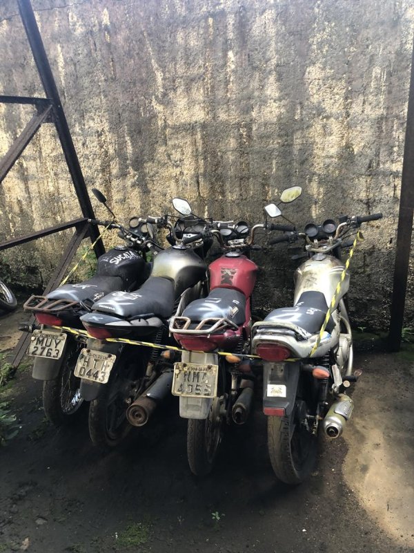 04 MOTOCICLETAS: HONDA/CG 125 TITAN KS, 2003/03, AZUL, (SUCATA APROVEITÁVEL); JTA/SUZUKI EN125 YES, 2008/09, PRATA, (SUCATA APROVEITÁVEL); HONDA/CG 150 TITAN KS, 2008/08, VERMELHA, (SUCATA APROVEITÁVEL); HONDA/CG 150 TITAN ES, 2009/09, CINZA, (SUCATA APROVEITÁVEL)