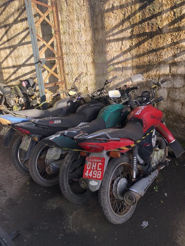 04 MOTOCICLETAS: HONDA/BIZ 125 KS, 2011/11, ROSA, (SUCATA APROVEITÁVEL); HONDA/BIZ 125 KS, 2007/07, VERMELHA, (SUCATA APROVEITÁVEL); I/SHINERAY, VERMELHA, (SUCATA FERROSA); HONDA/CG 125 FAN ES, 2011/12, VERMELHA, (SUCATA APROVEITÁVEL)