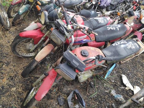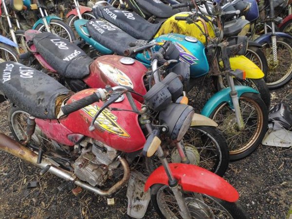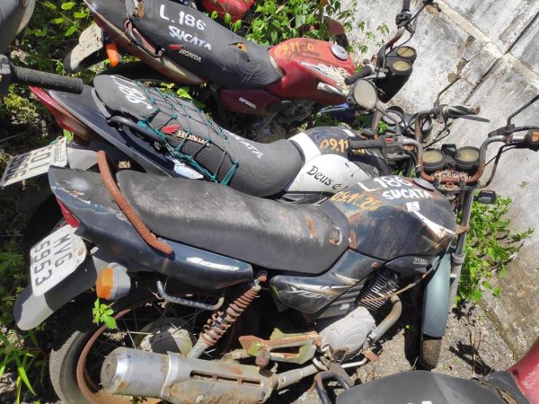 4 MOTOCICLETAS: HONDA/BIZ 125 ES, 2013/2013, PRETA S/, PLACA137 (SUCATA APROVEITÁVEL) HONDA/CG 150 TITAN KS, 2006/2006, PRETA, DNP1607 (SUCATA APROVEITÁVEL) YAMAHA/FACTOR YBR125 E, 2011/2011, VERMELHA, OHB1776 (SUCATA APROVEITÁVEL) YAMAHA/FACTOR YBR125 K, 2011/2011, ROXA, PFO8880 (SUCATA APROVEITÁVEL)