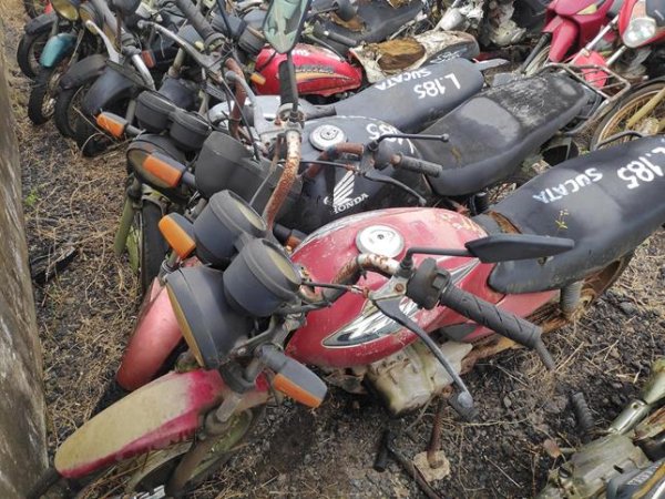 4 MOTOCICLETAS: YAMAHA/YBR125 FACTOR K, 2013/2014, VERMELHA, ORM6215 (SUCATA APROVEITÁVEL) HONDA/CG 125 TODAY, 1994/1994, VERMELHA, MUI1146 (SUCATA APROVEITÁVEL) CG 125: HONDA, 1989/1989, VERMELHA, GNL5903 (SUCATA APROVEITÁVEL) HONDA/CG 150 TITAN KS, 2005/2006, VERMELHA, KLS7226 (SUCATA FERROZA)