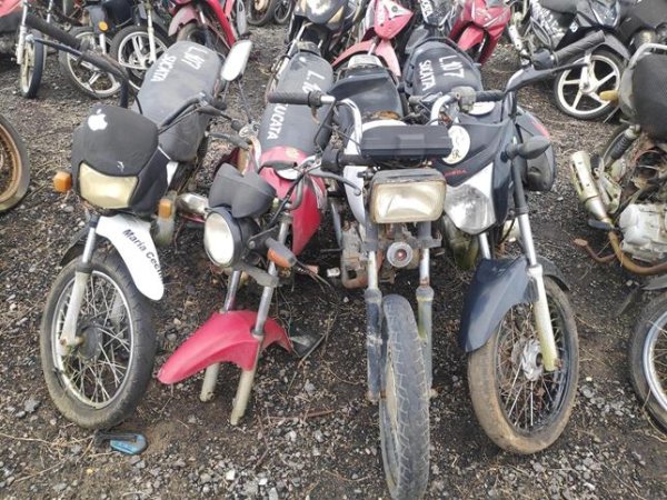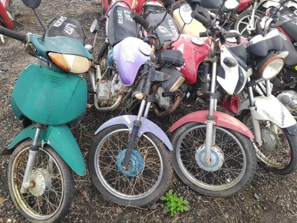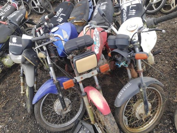 4 MOTOCICLETAS: DAFRA/SPEED 150, 2010/2010, PRETA, NMD8673 (SUCATA APROVEITÁVEL) HONDA/CG 125 FAN, 2008/2008, CINZA, MUX5973 (SUCATA FERROZA) HONDA/CG 125 TITAN KS, 2000/2000, VERMELHA, MUS1497 (SUCATA APROVEITÁVEL) HONDA/CG 125 FAN KS, 2018/2018, PRETA, OHB0498 (SUCATA APROVEITÁVEL)