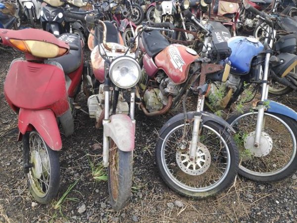 4 MOTOCICLETAS: CG 125 TITAN KS: HONDA, 2003/2004, VERMELHA, MVD8968 (SUCATA APROVEITÁVEL) YAMAHA/YBR 125K, 2005/2005, PRETA, MVE4974 (SUCATA APROVEITÁVEL) HONDA/CG 125 TITAN KSE, 2003/2003, PRATA, MVC2082 (SUCATA APROVEITÁVEL) JTA/SUZUKI EN125 YES SE, 2010/2011, AMARELA, NLZ2183 (SUCATA APROVEITÁVEL)