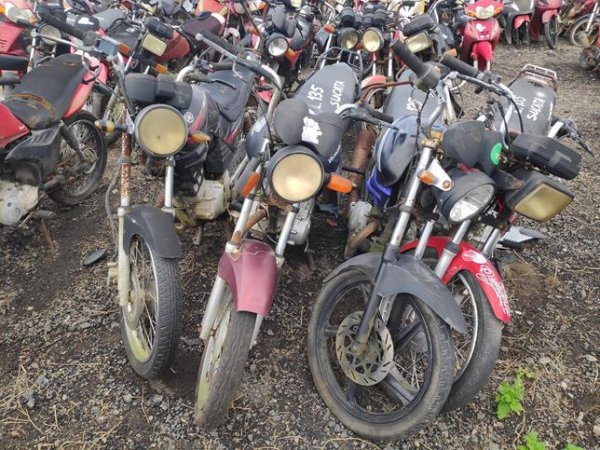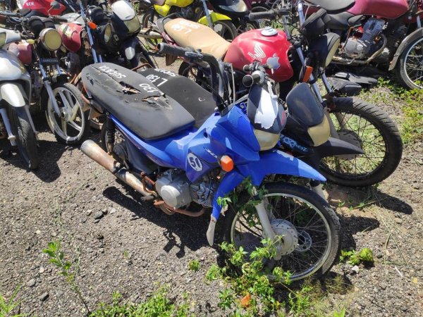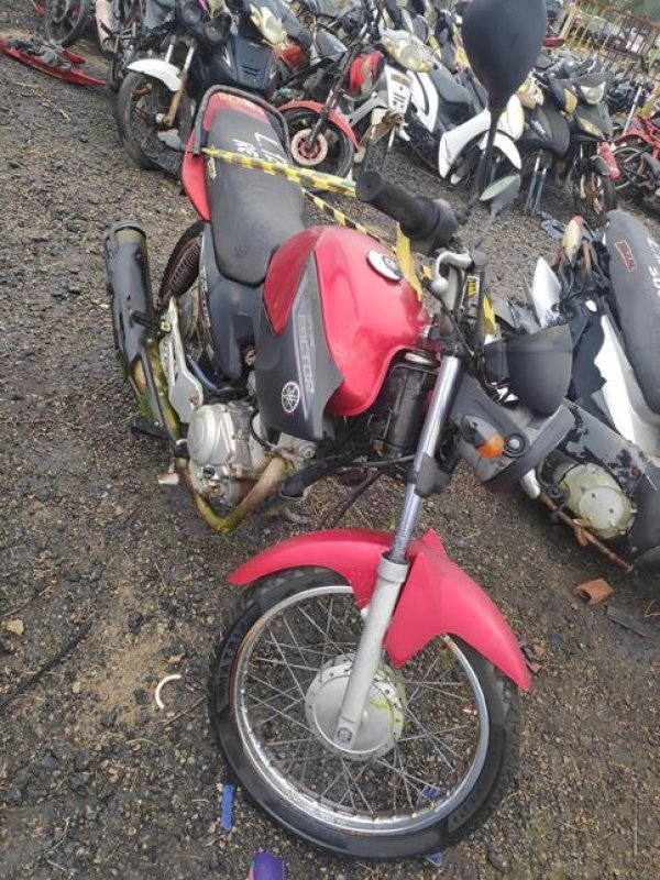 4 MOTOCICLETAS: YAMAHA/YBR 125K, 2003/2004, ROXA, MUY6813 (SUCATA APROVEITÁVEL) JTA/SUZUKI EN125 YES, 2008/2008, VERMELHA, NLX1109 (SUCATA FERROZA) HONDA/CG 150 TITAN KS, 2008/2008, AZUL, ECF6002 (SUCATA APROVEITÁVEL) DAFRA/SPEED 150, 2008/2009, AMARELA, IAK0333 (SUCATA FERROZA)