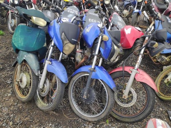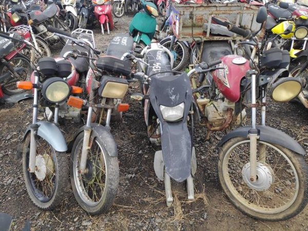 4 MOTOCICLETAS: HONDA/POP100, 2008/2008, PRETA, KHT1366 (SUCATA APROVEITÁVEL) HONDA/CG 125 TITAN KS, 2003/2003, VERMELHA, MUZ1234 (SUCATA APROVEITÁVEL) SUNDOWN/HUNTER 90, 2007/2007, VERMELHA, MUH1964 (SUCATA APROVEITÁVEL) HONDA/BIZ 125 KS, 2006/2006, PRATA, NGB5112 (SUCATA APROVEITÁVEL)