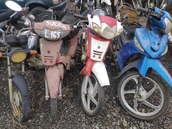 4 MOTOCICLETAS: I/SHINERAY XY50Q PHOENIX , VERMELHA S/, PLACA6 (SUCATA FERROZA) I/SHINERAY XY50Q PHOENIX , VERMELHA S/, PLACA153 (SUCATA APROVEITÁVEL) HONDA/CG 125 TITAN ES, 2003/2003, AZUL, MVD5848 (SUCATA APROVEITÁVEL) YAMAHA/T115 CRYPTON, 2013/2014, AZUL S/, PLACA5 (SUCATA APROVEITÁVEL)