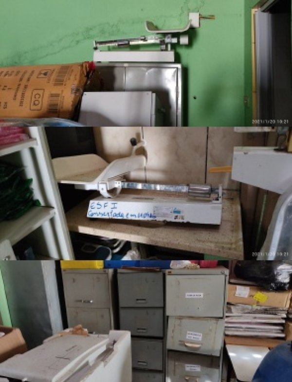 DIVERSOS EQUIPAMENTOS SUCATEADOS: IMPRESSORAS, MONITORES, CPU’S, PERIFÉRICOS, GELADEIRA, ESTANTES E ARQUIVOS DE AÇO, CADEIRAS, ARMÁRIOS, MACA, BALANÇAS HOSPITALAR, MESAS E ELETRODOMÉSTICOS.