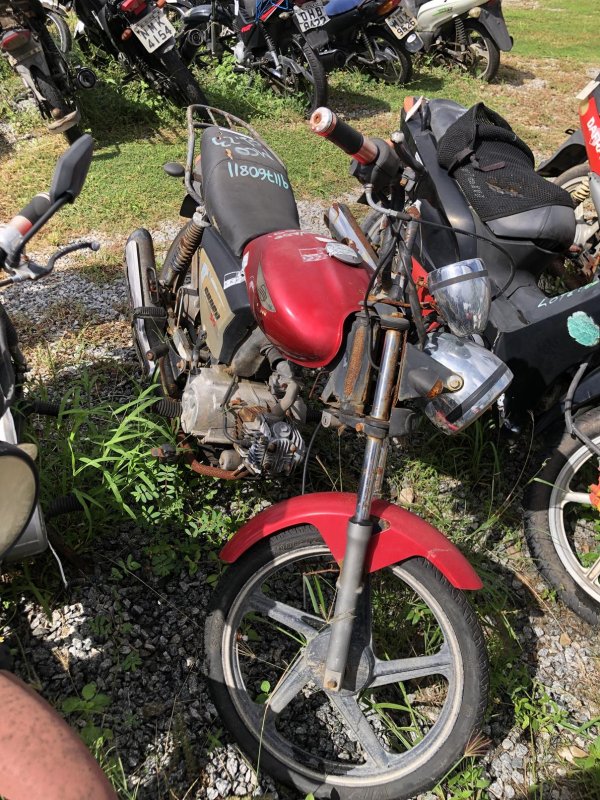 DAFRA/SUPER 50, ANO/MOD 2014/2015, COR VERMELHA, COMBUS GASOLINA, PLACA 1 EMPLAC, RENAVAM 1319774609, CHASSI 95VJJBJ2EFM001280, N° MOTOR JBJEM01051. (SITUAÇÃO DO VEÍCULO: VEÍCULO SEM 1º EMPLACAMENTO, RETROVISORES AUSENTES, TANQUE COM AVARIAS, PISCAS DIANTEIRO, PAINEL E BANCO DANIFICADOS, PONTOS DE CORROSÃO, REGULARIZAÇÃO E TRATAMENTO POR CONTA DO COMPRADOR).