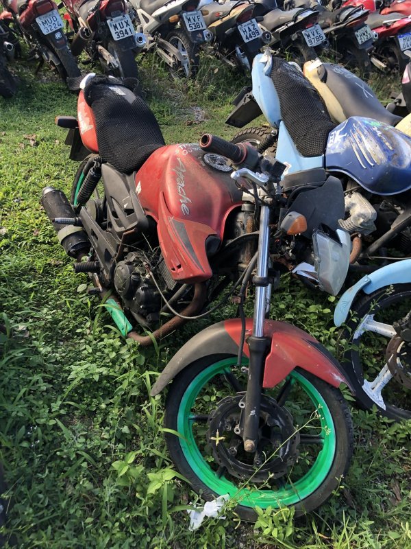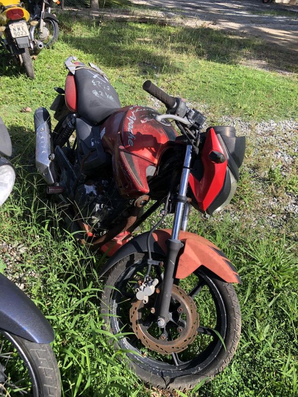 DAFRA/TVS APACHE RTR 150, ANO/MOD 2011/2012, COR VERMELHA, COMBUS GASOLINA, PLACA NMM9997, RENAVAM 343283905, CHASSI 95VGF3G2BCM003298, N° MOTOR C1E1029732. (SITUAÇÃO DO VEÍCULO: BANCO RASGADO, RETROVISORES AUSENTES, PISCAS DIANTEIRO ESQUERDO DANIFICADO, INICIO DE OXIDAÇÃO NO, CHASSI, REGULARIZAÇÃO, TRATAMENTO OU REMARCAÇÃO POR CONTA DO COMPRADOR).