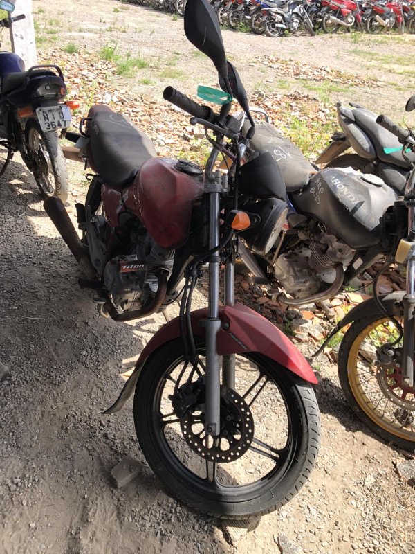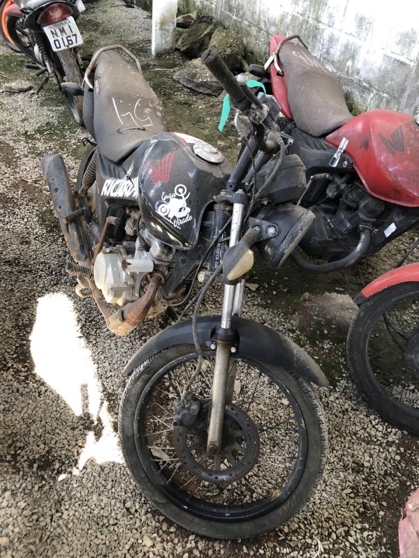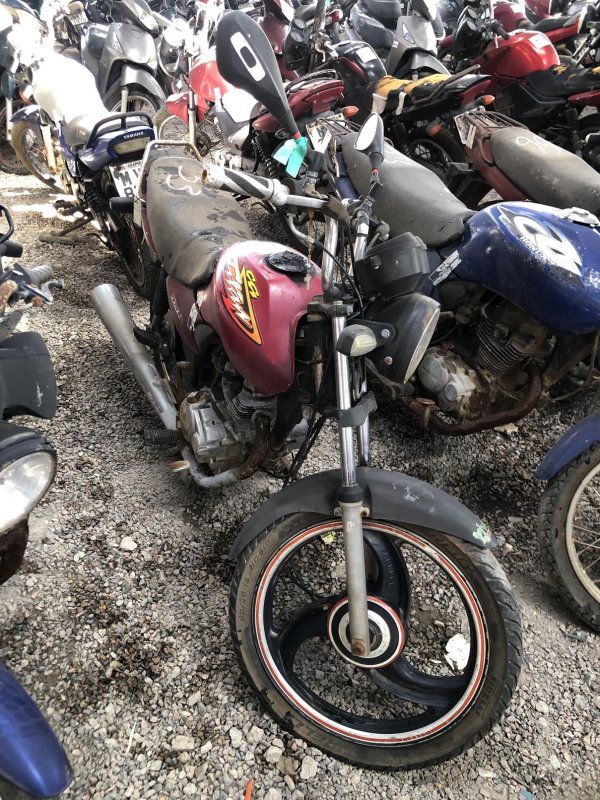 HONDA/CG 125 TITAN KS, ANO/MOD 2003/2003, COR VERMELHA, COMBUS GASOLINA, PLACA MVD8438, RENAVAM 818909412, CHASSI 9C2JC30103R208348, N° MOTOR JC30E13208348. (SITUAÇÃO DO VEICULO: BANCO E PISCAS DIANTEIRO ESQUERDO DANIFICADOS, TANQUE COM RISCOS, CHASSI EM ESTADO INICIAL DE OXIDAÇÃO, TRATAMENTO E REGULARIZAÇÃO POR CONTA DO COMPRADOR).