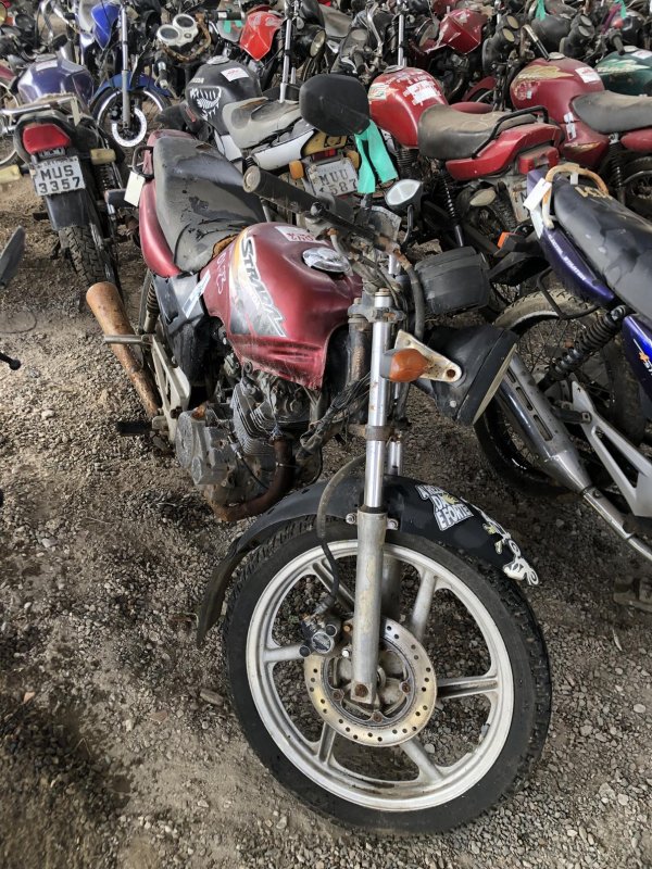 HONDA/CBX 200 STRADA, ANO/MOD 2001/2001, COR VERMELHA, COMBUS GASOLINA, PLACA MUS6652, RENAVAM 754121836, CHASSI 9C2MC27001R018736, N° MOTOR MC27E1018736. (SITUAÇÃO DO VEICULO: VEICULO COM PONTOS DE CORROSÃO, PAINEL, FAROL E CARENAGENS DANIFICADAS, BANCO RASGADO, TANQUE AMASSADO, CHASSI EM ESTADO INICIAL DE OXIDAÇÃO, TRATAMENTO E REGULARIZAÇÃO POR CONTA DO COMPRADOR).