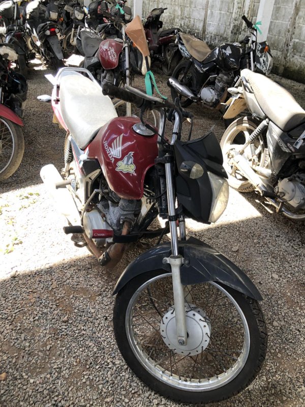 HONDA/CG 125 TITAN KSE, ANO/MOD 2003/2003, COR VERMELHA, COMBUS GASOLINA, PLACA MVA1854, RENAVAM 803795220, CHASSI 9C2JC30213R641613, N° MOTOR JC30E23641613. (SITUAÇÃO DO VEICULO: VEICULO BATIDO, GUIDOM E TANQUE AMASSADOS, CARENAGENS DANIFICADAS, RETROVISOR ESQUERDO QUEBRADO, CHASSI EM ESTADO AVANÇADO DE OXIDAÇÃO, DECALQUE LEGÍVEL, TRATAMENTO, REGULARIZAÇÃO OU REMARCAÇÃO POR CONTA DO COMPRADOR).