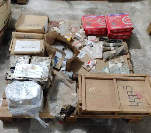 DIVERSAS PEÇAS NOVAS DE ALMOXARIFADO: 1 ROLAMENTO CAIXA TRANF ENGES 2351-020-604 (CÓD.10411) PEÇA. // 6 LANCADEIRA APOIO MATISA 702 (CÓD.11004) PEÇA. // 4 CUBO ENGATE TRANSF ENGESA 2348-060-026 (CÓD.12415) PEÇA. // 2 ANEL TRAVA ENGESA 2680-501-770 (CÓD.14512) PEÇA. // 1 CASQUILHO EIXO DIANTEIRO CASE 5141454 (CÓD.14524) PEÇA. // 3 PINO ESFÉRICO MANGA EIXO CASE 5137138 (CÓD.14552) PEÇA. // 3 CABO FLEXIVEL - 226441A4 (CÓD.14837) PEÇA. // 20 LAMPADA SINALIZACAO KT-48/48 VOLTS (CÓD.15694) PEÇA. // 8 PARAFUSO CAB CHATA M5,0X10,0 MATISA 615 (CÓD.16117) PEÇA. // 7 PORCA PINO TENSÃO MATISA 112 (CÓD.16250) PEÇA. // 4 RETENTOR VEDAÇÃO CUBO EIXO CASE 5121907 (CÓD.16345) PEÇA. // 2 BIELA BRONZE MATISA 307 (CÓD.16714) PEÇA. // 26 BUCHA BRONZE TIPO BUJÃO AR CONDICIONADO (CÓD.16775) PEÇA. // 1 ESTATOR - 3.176.070 (CÓD.17096) PEÇA. // 1 POLIA ALTERNADOR CASE J908560 (CÓD.17444) PEÇA. // 5 PUXADOR LINHA AGULHA MATISA 503 (CÓD.17475) PEÇA. // 1 TAMPA MOTOR PARTIDA MF 2710445 (CÓD.17597) PEÇA. // 6 FUSÍVEL NH T4 1000A 500V RETARDADO (CÓD.22513) PEÇA. // 1 PRISIONEIRO BARRA ENG SUP VALTRA HJ9221 (CÓD.22721) PEÇA. // 2 PINO ARTICULAÇÃO 81694900 (CÓD.22723) PEÇA. // 1 TAMPA EIXO LATERAL VALTRA 81162100 (CÓD.23589) PEÇA. // 6 VEDADOR ÓLEO ENGESA 2681-803-214 (CÓD.23846) PEÇA. // 1 ROLAMENTO TRANSM ENGESA 1828-050-334 (CÓD.23847) PEÇA. // 2 ROLAMENTO 1828-050-342 (CÓD.23849) PEÇA. // 2 ROLAMENTO LATERAL LE TRANSM VW TN4598313 (CÓD.23882) PEÇA. // 10 ARRUELA DE ACO ATLAS COPEÇAO 2252787901 (CÓD.25506) PEÇA. // 2 PORCA RODA DIANTEIRA CASE 5141692 (CÓD.26019) PEÇA. // 1 PISTAO PARKER P1A-S025DS-0080 CURSO 25X80 (CÓD.28193) PEÇA. // 6 MANOPLA ALAVANCA HIDR VALTRA 80090100 (CÓD.28295) PEÇA. // 7 ENGRENAGEM TRANSM ENGESA 2680-505-007 (CÓD.28992) PEÇA. // 1 TAMPA ALTERNADOR WAPSA MF 3175460 (CÓD.30163) PEÇA. // 2 ENGRENAGEM ENGESA 2680-504-949 (CÓD.30691) PEÇA. // 1 ENGRENAGEM PLANETARIA 2680-504-965 (CÓD.30693) PEÇA. // 2 ENGRENAGEM TRANSM ENGESA 2680-501-664 (CÓD.31403) PEÇA. // 6 CONEXAO ATLAS COPEÇAO 0581002501 (CÓD.31979) PEÇA. // 1 ESCARIADOR ESFERICO 1/8" DREMEL 2615009905 (CÓD.32312) PEÇA. // 1 CILINDRO ENGESA 1804-201-072 (CÓD.32407) PEÇA. // 1 PISTÃO HIDRÁULICO VALTRA 80895900 (CÓD.38271) PEÇA. // 4 TAMPA CUBO RODA CIVEMASA CR3/3 (CÓD.38632) PEÇA. // 4 SUPORTE RETENTOR CIVEMASA CR3/2 (CÓD.38633) PEÇA. // 1 PROTEÇÃO SISTEMA ELÉTR VALTRA 83856200 (CÓD.39087) PEÇA. // 1 AMORTECEDOR SUSPENSÃO TRAS VW TAP513031 (CÓD.39826) PEÇA. // 9 GANCHO SUSPENSAO GALVANIZADO (CÓD.39867) PEÇA. // 1 CAIXA DIRECAO C/ ESFERA MOTO SILVER 10008-C (CÓD.42763) PEÇA. // 3 JOGO REPARO CASE 1990647C2 (CÓD.46614) JOGO. // 1 CORPO VALVULA VALTRA 81167900 (CÓD.47668) PEÇA. // 2 CONJUNTO RETENTOR CASE J934486 (CÓD.48055) PEÇA. // 1 VALVULA BY PASS VALTRA 30194300 (CÓD.48174) PEÇA. // 2 GAXETA QUADRADA GRAFITE 1/8" TEADIT 2000S (CÓD.48944) KG. // 1 MANCAL DIANTEIRO ISKRA 85148000 (CÓD.49156) PEÇA. // 1 PINHAO INVERSOR CASE A188123 (CÓD.49387) PEÇA. // 28,545 CHAPA NYLON 6 COR NATURAL 16 X 1000X3000MM (CÓD.60304) KG. // 1 TUBO SIST AR CONDICIONADO CAT 256-7205 (CÓD.75973) PEÇA. // 1 PLATÔ EMBREAGEM MB 345.250.72.04 (CÓD.78834) PEÇA.