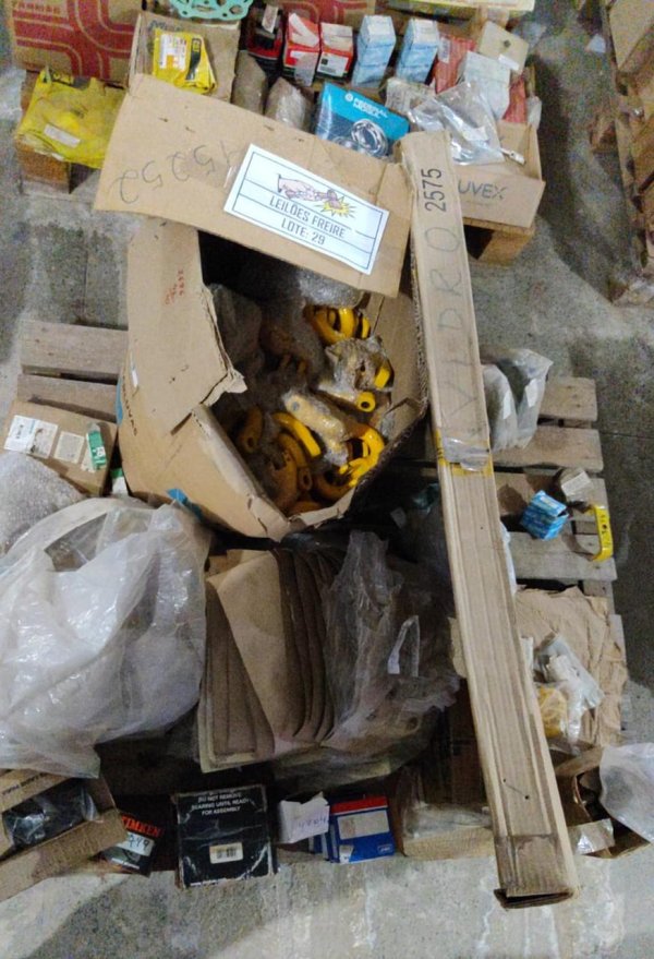 DIVERSAS PEÇAS NOVAS DE ALMOXARIFADO: 2 ROLAMENTO AUTOCOMP ROLOS 22220 CCKW33 (CÓD.10398) PEÇA. // 6 ROLAMENTO ROLOS CONICOS 55176/55437 (CÓD.10625) PEÇA. // 7 CRUZETA TRANSMISSÃO SPICER 5165X (CÓD.12413) PEÇA. // 7 CRUZETA TRANSMISSÃO SCANIA 207563 (CÓD.12414) PEÇA. // 1 MEXEDOR MECÂNICO JACTO 213447 (CÓD.12774) PEÇA. // 4 ROLAMENTO TRANSM ENGESA 2351-090-670 (CÓD.14349) PEÇA. // 4 ROLAMENTO TRANSM ENGESA 2351-090-696 (CÓD.14350) PEÇA. // 2 ROLAMENTO TRANSM ENGESA 2351-090-700 (CÓD.14351) PEÇA. // 1 JOGO REPARO EIXO ENGESA 1915-000-106 (CÓD.14550) PEÇA. // 39 PRISIONEIRO MOTOR ENGESA 2899-900-165 (CÓD.14639) PEÇA. // 2 ROLAMENTO - 2351090688 (CÓD.15236) CONJUNTO. // 1 ANEL VEDAÇÃO MOTOR CUMMINS 3018695 (CÓD.16607) PEÇA. // 3 ENGRENAGEM TRANSM ENGESA 2680-501-672 (CÓD.17043) PEÇA. // 3 ROLAMENTO ROLOS CIL ENGESA 2351-030-090 (CÓD.18836) PEÇA. // 2 ARRUELA ENCOSTO MOTOR CAT 676874 (CÓD.20765) PEÇA. // 3 REPARO SISTEMA HIDRÁULICO CAT 096-6457 (CÓD.20886) PEÇA. // 1 TIRANTE CAT 8P7033 (CÓD.21131) PEÇA. // 4 ARO RODA CAT 2Y4567 (CÓD.24048) PEÇA. // 1 ANEL TRAVA CAT 0949950 (CÓD.24053) PEÇA. // 2 PORCA CAT 8T3652 (CÓD.24440) PEÇA. // 10 HASTE CABEÇOTE MOTOR CAT 5S5918 (CÓD.24894) PEÇA. // 12 BRONZINA BIELA MOTOR CUMMINS 3150011 (CÓD.25109) PEÇA. // 1 ASSENTO DA VALVULA NS 50 51310 (CÓD.25302) PEÇA. // 3 TAMPA CAT 6E4944 (CÓD.25429) PEÇA. // 3 ROLAMENTO ENGESA 2351-090-653 (CÓD.26155) PEÇA. // 6 BICO RESFRIADOR PISTAO 3013591 (CÓD.26527) PEÇA. // 3 TERMINAL FEMEA 2" X 1 1/2" JACTO 231035T (CÓD.26981) PEÇA. // 4 ROLAMENTO TRANSM ENGESA 2351-020-442 (CÓD.28015) PEÇA. // 1 ANEL ACO CAT 1338743 (CÓD.29316) PEÇA. // 12 RETENTOR VEDAÇÃO CAT 9Y8847 (CÓD.31180) PEÇA. // 1 ROAMENTO ENGESA 2351-090-645 (CÓD.31413) PEÇA. // 3 ROLAMENTO ENGESA 1817-040-078 (CÓD.31420) PEÇA. // 2 JUNTA TAMPA ADMISSAO CAT 7C1152 (CÓD.31641) PEÇA. // 2 JUNTA TUBULACAO COMPRES AR CAT 1S7057 (CÓD.31643) PEÇA. // 1 COMPRESSOR AR 7057 (CÓD.32405) PEÇA. // 1 BUCHA CAT 4M1986 (CÓD.32873) PEÇA. // 1 SUITE INTERRUPTOR CAT 203-3220 (CÓD.33523) PEÇA. // 2 TUBO CILINDRO HIDRÁULICO CAT 9S6292 (CÓD.34093) PEÇA. // 7 PLACA EMBREAGEM CAT 1145772 (CÓD.34390) PEÇA. // 1 MANGUEIRA LONADA RET YANMAR NS9059143 (CÓD.34936) PEÇA. // 4 COLAR VALVULA YANMAR NS5011190 (CÓD.36648) PEÇA. // 1 COPO VISOR SIST LUBRIFIC YANMAR NS5034530 (CÓD.36649) PEÇA. // 12 PARAFUSO ENGESA 2891-400-023 (CÓD.38153) PEÇA. // 3 ANEL BORRACHA MOTOR CASE 86598104 (CÓD.38334) PEÇA. // 2 SUPORTE REVERSAO CAT 6K3179 (CÓD.39081) PEÇA. // 1 TAMPA COMBUSTIVEL CAT 109-5862 (CÓD.39731) PEÇA. // 1 BOTAO CHAVE ROTATIVA CAT 7Y9390 (CÓD.39970) PEÇA. // 3 VARETA VALVULA YANMAR NS5014400 (CÓD.39976) PEÇA. // 1 TAMPA TANQUE OLEO YANMAR NS5055030 (CÓD.39977) PEÇA. // 8 ELO EMBREAGEM CAT 2H5046 (CÓD.42669) PEÇA. // 2 MANCAL ENGRENAGEM TRANSM CAT 114-5829 (CÓD.45846) PEÇA. // 1 ROLAMENTO ESFERA CAT 1145830 (CÓD.45850) PEÇA. // 12 CAMISA INJETOR CUMMINS 147056 (CÓD.45908) PEÇA. // 4 MANCAL FERRO FUNDIDO TIPO APOIO ASE 05 (CÓD.46296) PEÇA. // 2 MANCAL RADIAL 90X115X90 TGM 8.43.0540.992 (CÓD.47483) PEÇA. // 1 ENGRENAGEM CAT 1145844 (CÓD.48815) PEÇA. // 4 ANEL VEDACAO CAT 8C3081 (CÓD.48821) PEÇA. // 8 FILTRO CAT 2314486 (CÓD.49213) PEÇA. // 1 TUBO CARDAN GASCOM 0140015 (CÓD.51292) PEÇA. // 10 PARAFUSO SEXTAVADO YANMAR HB6X20 (CÓD.52476) PEÇA.