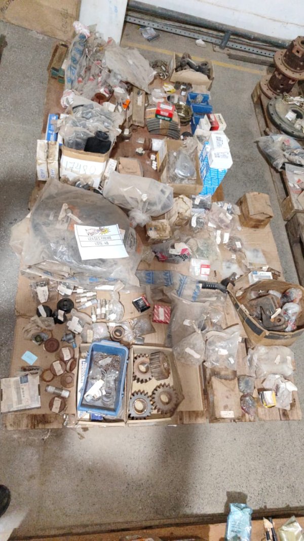 DIVERSAS PEÇAS NOVAS DE ALMOXARIFADO: 2 ARRUELA LISA ENGESA 2680-103-413 (CÓD.14520) PEÇA. // 5 CASTANHA RODA ENGESA 2252-100-132 (CÓD.14525) PEÇA. // 20 CONEXÃO MANGUEIRA ENGESA 2261-040-304 (CÓD.14530) PEÇA. // 2 EIXO SISTEMA TRANSM ENGESA 2391-305-148 (CÓD.14537) PEÇA. // 2 ENGRENAGEM TRANSM ENGESA 2342-000-951 (CÓD.14538) PEÇA. // 1 ENGRENAGEM TRANSM ENGESA 2342-000-960 (CÓD.14539) PEÇA. // 4 ARTICULAÇÃO EIXO DIANTEIRO CASE 5119660 (CÓD.17469) PEÇA. // 2 ROLAMENTO TRANSM ENGESA 1828-050-318 (CÓD.23613) PEÇA. // 4 ROLAMENTO ESFERAS ENGESA 2681-803-206 (CÓD.23848) PEÇA. // 2 BOMBA SISTEMA HIDR ENGESA 1831-201-432 (CÓD.25005) PEÇA. // 2 ENGRENAGEM ENGESA 2680-501-613 (CÓD.26156) PEÇA. // 1 EIXO ENGESA 2680-501-851 (CÓD.26158) PEÇA. // 1 ENGRENAGEM PLANET ENGESA 2680-504-957 (CÓD.30692) PEÇA. // 3 CONTRA-EIXO TRANSM ENGESA 2680-314-457 (CÓD.31402) PEÇA. // 2 ENGRENAGEM TRANSM ENGESA 2680-501-656 (CÓD.31404) PEÇA. // 2 ENGRENAGEM TRANSM ENGESA 2680-501-648 (CÓD.31405) PEÇA. // 1 ENGRENAGEM ENGESA 2680-501-826 (CÓD.31406) PEÇA. // 2 ENGRENAGEM ENGESA 2680-501-818 (CÓD.31414) PEÇA. // 1 ENGRENAGEM TRANSM ENGESA 2349-000-698 (CÓD.31416) PEÇA. // 1 GARFO ENGESA 2680-700-691 (CÓD.31417) PEÇA. // 1 GARFO ENGESA 2680-700-683 (CÓD.31419) PEÇA. // 30 GRAXEIRA PAINEL CAT 3K6675 (CÓD.32424) PEÇA. // 1 MOSPIN DIFERENCIAL ENGESA 1828-201-014 (CÓD.33132) PEÇA. // 3 ENGRENAGEM TRANSM ENGESA 2341-000-532 (CÓD.33167) PEÇA. // 2 ENGRENAGEM TRANSM ENGESA 2341-000-095 (CÓD.33241) PEÇA. // 2 GARFO PINHÃO ENGESA 2680-701-825 (CÓD.38149) PEÇA. // 4 ANEL DESGASTE ENGESA 2021-050-108 (CÓD.41081) PEÇA. // 3 EIXO SISTEMA TRANSM ENGESA 2391-901-701 (CÓD.41328) PEÇA. // 6 FLANGE ENGESA 2282-309-206 (CÓD.48291) PEÇA. // 6 FLANGE SIST TRANSM ENGESA 2282-309-095 (CÓD.48292) PEÇA. // 5 ENGRENAGEM ENGESA 2342-000-943 (CÓD.48295) PEÇA.