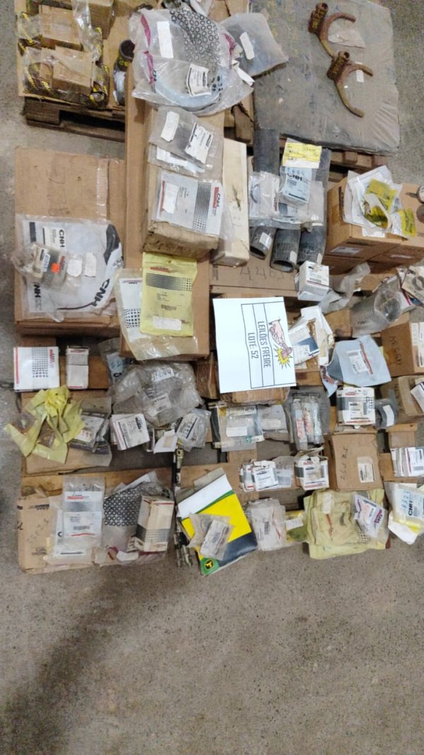 DIVERSAS PEÇAS NOVAS DE ALMOXARIFADO: 1 ÁRVORE Z=17 TRANSMISSÃO MF 534109 M93 (CÓD.12346) PEÇA. // 7 ANEL RETENTOR EIXO TRANS CASE A159297 (CÓD.16451) PEÇA. // 2 RESPIRO HIDRÁULICO CASE 1971726C1 (CÓD.16549) PEÇA. // 2 BUCHA EIXO ELEVADOR CASE A188508 (CÓD.20716) PEÇA. // 2 BUCHA EIXO ELEVADOR CASE A188507 (CÓD.20718) PEÇA. // 4 FLEXÍVEL FREIO FORD 5119381 (CÓD.21562) PEÇA. // 2 TORNEIRA RESERV COMB MF 490353M1 (CÓD.22429) PEÇA. // 1 ENGRENAGEM CASE 1995348C1 (CÓD.23125) PEÇA. // 2 JUNTA CASE A188501 (CÓD.25881) PEÇA. // 1 ANEL TRAVA SIST TRANSM CASE 10016125 (CÓD.25899) PEÇA. // 4 ANEL TRAVA CASE 10016156 (CÓD.26776) PEÇA. // 8 ARRUELA ROLAMENTO INVERSOR CASE A159463 (CÓD.26787) PEÇA. // 3 ROLAMENTO HÉLICE CASE J910739 (CÓD.28652) PEÇA. // 1 ENGRENAGEM TRANSMISSÃO CASE 284767A1 (CÓD.30154) PEÇA. // 1 COLAR CASE 1345906C1 (CÓD.31152) PEÇA. // 1 ENGRENAGEM CASE 1995383C1 (CÓD.33025) PEÇA. // 1 KIT CASE 256863A1 (CÓD.33028) PEÇA. // 19 CALÇO PINHÃO TRANSMISSÃO CASE A158879 (CÓD.33031) PEÇA. // 4 PLACA FIX DISCO CASE 1997122C1 (CÓD.33394) PEÇA. // 4 BUCHA RASTELO SANTAL 4720.082.2 (CÓD.35885) PEÇA. // 1 PINHÃO CUBO PLANTÁRIO CASE 247555A1 (CÓD.37628) PEÇA. // 8 APOIO MOLA EIXO INVER TRANS CASE A186965 (CÓD.38323) PEÇA. // 1 PINHÃO EIXO PRINCIPAL CASE 244626A1 (CÓD.41984) PEÇA. // 3 KIT REPARO COLUNA VOLANTE CASE 318942A1 (CÓD.42678) PEÇA. // 6 CASQUILHO BIELA 0,25 CASE A77466 (CÓD.43121) PEÇA. // 2 ANEL TRAVA CASE 100559A1 (CÓD.43877) PEÇA. // 2 POLIA ANTIVIBRADORA CASE J914454 (CÓD.44618) PEÇA. // 2 COBERTA CAPA TRAS NEW HOLLAND 5118934 (CÓD.45501) PEÇA. // 1 FLANGE ENTRADA CASE 223968A1 (CÓD.45534) PEÇA. // 1 PARA CHOQUE CASE 1348091C1 (CÓD.45553) PEÇA. // 3 MANGUEIRA INF RADIADOR CASE 141570A1 (CÓD.45574) PEÇA. // 1 POLIA MOTOR CASE A189155 (CÓD.46063) PEÇA. // 2 JOGO JUNTA CASE A77925 (CÓD.48349) PEÇA. // 1 CAPA ROLAMENTO CASE 87324517 (CÓD.48924) PEÇA. // 1 CONE ROLAMENTO CASE 87324516 (CÓD.48964) PEÇA. // 2 ROLAMENTO CONE CASE 1968291C1 (CÓD.48966) PEÇA. // 1 CAPA ROLAMENTO CASE 87324532 (CÓD.48968) PEÇA. // 1 CONE ROLAMENTO CASE 87324534 (CÓD.48969) PEÇA. // 1 COROA PINHAO CASE 87324538 (CÓD.48971) PEÇA. // 1 ANEL VEDACAO CASE 87324542 (CÓD.48972) PEÇA. // 1 ANEL VEDACAO 87324547 (CÓD.48973) PEÇA. // 3 RETENTOR CASE A63399 (CÓD.49301) PEÇA. // 7 TAMPA CONJUNTO VALVULA CASE 281235A1 (CÓD.49302) PEÇA. // 3 EIXO ALAVANCA CASE 245495A1 (CÓD.49339) PEÇA. // 4 ADESIVO DIREITO MX135 CASE 279999A1 (CÓD.49699) PEÇA. // 1 JUNTA ESFÉRICA MOTOR CASE 1974525C2 (CÓD.49745) PEÇA. // 4 CONJUNTO BOMBA HIDRÁULICA CASE 5179719 (CÓD.49759) PEÇA. // 1 GUARNIÇÃO ACABAMENTO JDEERE CB01492977 (CÓD.51066) PEÇA. // 1 TUBO ESCAPAMENTO CASE 195773A2 (CÓD.51274) PEÇA. // 1 JOGO JUNTA CASE 87455632 (CÓD.53227) PEÇA. // 3 ROLAMENTO ROLOS CONICOS CASE 1345711C1 (CÓD.53479) PEÇA. // 3 CAPA ROLAMENTO CASE 1345712C1 (CÓD.53480) PEÇA. // 2 ROLAMENTO AGULHA CASE A175487 (CÓD.53578) PEÇA. // 2 ROLAMENTO AGULHA CASE A178460 (CÓD.53579) PEÇA. // 2 ROLAMENTO AGULHA CASE A188474 (CÓD.53580) PEÇA. // 1 PORCA PINHÃO CASE K261014 (CÓD.53649) PEÇA. // 1 PORCA FILTRO AR CABINA CASE 22514210 (CÓD.54755) PEÇA. // 1 GRAMPO PINO CABINA CASE 602404T1 (CÓD.54756) PEÇA. // 1 CAIXA SATELITE CASE 247565A1 (CÓD.55044) PEÇA. // 1 FECHADURA GRADE CASE 84185508 (CÓD.56502) PEÇA. // 1 MANIPULO VÁLVULA CASE 81863165 (CÓD.56505) PEÇA. // 4 SOQUETE JUNTA ESFÉRICA JDEERE 0120009189 (CÓD.58356) PEÇA. // 2 KIT RETENTOR BBA JDEERE CB 11463016 (CÓD.58413) PEÇA. // 4 EIXO ACION CORT JDEERE 0330042757 (CÓD.58419) PEÇA. // 4 ANEL APOIO RED FINAL JDEERE CB 1467309 (CÓD.58441) PEÇA. // 4 ANEL APOIO RED FINAL JDEERE CB 1467308 (CÓD.58442) PEÇA. // 2 PINO ROLO ALIMENTAÇAO JDEERE CB01464324 (CÓD.59272) PEÇA. // 1 BUCHA MANCAL EIXO DIANTEIRO CASE 5101112 (CÓD.61246) PEÇA. // 1 ANEL EIXO DIANTEIRO CASE 14471380 (CÓD.61247) PEÇA. // 1 VEDAÇÃO EIXO DIANTEIRO CASE 5188609 (CÓD.61248) PEÇA.