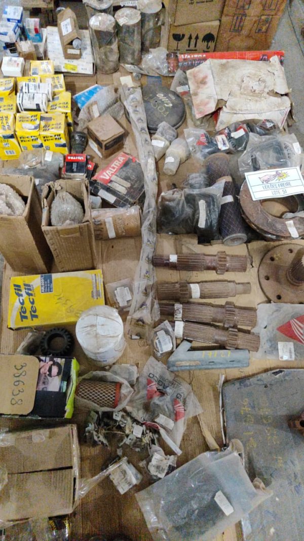 DIVERSAS PEÇAS NOVAS DE ALMOXARIFADO: 2 BUCHA BRAÇO BALANÇA HONDA 52109430300 (CÓD.11014) PEÇA. // 1 EIXO GARFO TRASEIRO HONDA 52141437010 (CÓD.11029) PEÇA. // 36 RAIO RODA HONDA 9732852311RO (CÓD.11041) PEÇA. // 12 PEDAL APOIO TRASEIRO HONDA 50715KW8920 (CÓD.11050) PEÇA. // 5 TRAVA TUBO RESPIRO HONDA 15772292010 (CÓD.11070) PEÇA. // 4 TUBO DRENO FILTRO AR HONDA 17358170000 (CÓD.11072) PEÇA. // 4 TUBO RESPIRO BATERIA HONDA 31502KFC900 (CÓD.11074) PEÇA. // 2 BRACO OSCILANTE HONDA 14431383000 (CÓD.11093) PEÇA. // 1 GUIA CORRENTE COMANDO HONDA 14550383000 (CÓD.11121) PEÇA. // 1 PLATÔ PRESSÃO EMB HONDA 22350107000 (CÓD.11132) PEÇA. // 1 ÁRVORE COMANDO VÁLV HONDA SC14100441930 (CÓD.11144) PEÇA. // 4 ANEL VEDAÇÃO MOTOR HONDA 91326590010 (CÓD.11195) PEÇA. // 1 BUJÃO CABEÇOTE HONDA 12361.KYO.890 (CÓD.11200) PEÇA. // 4 ARRUELA CABECOTE MOTOR CAT 9H1110 (CÓD.11209) PEÇA. // 29 ARRUELA TAMPA VALV MOTOR PERKINS 920002 (CÓD.11215) PEÇA. // 2 AGULHA CARBURADOR HONDA 16155397971 (CÓD.11258) PEÇA. // 8 ARRUELA COLETOR ESCAPE VALTRA 116080 (CÓD.11502) PEÇA. // 24 ARRUELA ESPACADORA VALMET 440620 (CÓD.11990) PEÇA. // 2 ANEL TOMADA FORÇA MF 1004633M1 (CÓD.12206) PEÇA. // 2 ARRUELA DISCO EIXO DIANT MF 358829M1 (CÓD.12227) PEÇA. // 2 CAIXA DIFERENCIAL VAZIA MF 2800781 (CÓD.12259) PEÇA. // 4 ARRUELA PARAFUSO RODA TRAS MF 353775X1 (CÓD.12396) PEÇA. // 97 LIMITADOR RODA TRASEIRA MF 898022M1 (CÓD.12434) PEÇA. // 3 RETENTOR VEDAÇÃO SABÓ 02310BRG (CÓD.13583) PEÇA. // 2 RETENTOR ÓLEO ALAVANCA HONDA 91201148003 (CÓD.13617) PEÇA. // 2 JUNTA SEPARADOR ÓLEO ACOPEÇAO 2252629900 (CÓD.13662) PEÇA. // 1 ENGRENAGEM PRIMÁRIA HONDA 23441437970 (CÓD.14425) PEÇA. // 1 ENGRENAGEM SECUNDÁRIA HONDA 23491397000 (CÓD.14432) PEÇA. // 1 BUCHA HASTE CONEXÃO HONDA 52473KY7000 (CÓD.15585) PEÇA. // 2 BOBINA FAÍSCA MOTO XL-125-S (CÓD.15611) PEÇA. // 1 PEDAL TRANSMISSÃO CAT 2R0696 (CÓD.15897) PEÇA. // 13 JUNTA TAMPA LATERAL HONDA 11395KGA900 (CÓD.16432) PEÇA. // 8 JUNTA CILINDRO HONDA 12191397020 (CÓD.16469) PEÇA. // 5 JUNTA CILINDRO MOTOR HONDA 12191-KGA-900 (CÓD.16471) PEÇA. // 8 ANEL 91303.377.000 (CÓD.16610) PEÇA. // 1 CUBO CENTRAL EMBR HONDA 22121397630 (CÓD.16945) PEÇA. // 6 DISCO - 0601025231 (CÓD.16966) PEÇA. // 4 PASTILHA FREIO DIANTEIRO PD 54 (CÓD.17360) PEÇA. // 4 PINO ENGATE - 333.997 (CÓD.17403) PEÇA. // 2 KIT PISTÃO ANÉIS P&A-9023 0,50 (CÓD.17422) CONJUNTO. // 2 PRISIONEIRO MOTOR PERKINS 0826403 (CÓD.17462) PEÇA. // 1 SUPORTE - 1.481.703 (CÓD.17560) PEÇA. // 3 TUBO - 2114.123.2 (CÓD.17699) PEÇA. // 1 TURBINA AR CONDICIONADO 21M-23 (CÓD.17730) PEÇA. // 1 BATERIA 12V HONDA 31500KW1901 (CÓD.18920) PEÇA. // 1 CABO DE VELOCIMETRO FORD BD2C.17260.A (CÓD.19311) PEÇA. // 1 JUNTA TAMPA CABEÇOTE HONDA 11395GBJ730 (CÓD.21715) PEÇA. // 8 PRATO MOLA 112450 (CÓD.23762) PEÇA. // 1 GUIA MB 541.016.01.28 (CÓD.25471) PEÇA. // 1 ROLAMENTO HONDA 91002KYO981 (CÓD.26961) PEÇA. // 1 VÁLVULA ALÍVIO FILTRO ÓLEO CASE J927622 (CÓD.28054) PEÇA. // 1 ESTATOR COMPLETO HONDA 31120KGA891 (CÓD.28536) PEÇA. // 5 ENGRENAGEM SECUNDÁRIA HONDA 23511KW2910 (CÓD.28684) PEÇA. // 1 DIAFRAGMA CUICA FREIO FREIAR 234362 (CÓD.32682) PEÇA. // 3 EIXO FIXO RODA DIANT HONDA 44301KW1900 (CÓD.32692) PEÇA. // 2 BUCHA HONDA 33609GK4620 (CÓD.32768) PEÇA. // 1 JOGO PISTAO WABCO 911.501.625.2 (CÓD.33220) JOGO. // 1 CANO FREI CIL MEST CON DIANT FORD BE0C2A040B (CÓD.33530) PEÇA. // 5 ALAVANCA ACELERADOR VALTRA 80052420 (CÓD.34162) PEÇA. // 1 ENGRENAGEM SECUNDÁRIA HONDA 2347143900 (CÓD.34915) PEÇA. // 1 ENGRENAGEM SECUNDÁRIA HONDA 23451KW1900 (CÓD.35029) PEÇA. // 1 ENGRENAGEM B ARV COM HONDA 14112-KGA-900 (CÓD.35044) PEÇA. // 1 SUPORTE FILTRO AR MB 696.520.70.41 (CÓD.36872) PEÇA. // 4 ABRAÇADEIRA EIXO DIANTEIRO FIAT 7773933 (CÓD.37237) PEÇA. // 1 DISCO EMBREAGEM VW 030/141033/T (CÓD.37618) PEÇA. // 1 ROLAMENTO EMBREAGEM VW 02A/141165/G (CÓD.37629) PEÇA. // 1 SOLUCAO BATERIA (CÓD.37717) PEÇA. // 6 CAPA ALAVANCA ESQUERDA HONDA 53177KS5700 (CÓD.37844) PEÇA. // 5 ANEL SEGURANCA CAMBIO VALTRA KG2025 (CÓD.38039) PEÇA. // 3 PLACA PEDAL APOIO HONDA 50711GN5730 (CÓD.38176) PEÇA. // 4 ADESIVO IDENTIFICAÇÃO VALTRA 81932500 (CÓD.38987) PEÇA. // 1 BORRACHA INTERNA TETO MB 344.837.04.98 (CÓD.39304) PEÇA. // 1 COXIM ELÁSTICO ESCAPAMENTO FIAT 51708151 (CÓD.41193) PEÇA. // 2 PISTÃO MOTOR 1.00MM HONDA 13105KGA306 (CÓD.41495) PEÇA. // 1 JOGO ANÉIS PISTÃO STD HONDA 13011KGAB00 (CÓD.41497) JOGO. // 2 PISTÃO MOTOR STD HONDA 13101KGAB00 (CÓD.41498) PEÇA. // 1 CARCACA INFERIOR PAINEL MELC (CÓD.41587) PEÇA. // 2 BATENTE VW 211/711149/1 (CÓD.42322) PEÇA. // 1 MOLA PEDAL PARTIDA HONDA 28261KGA900 (CÓD.42668) PEÇA. // 7 BARRA COMANDO ACELERAD VALTRA 82641100 (CÓD.43871) PEÇA. // 7 TERMINAL BARRA COM ACELER VALTRA 80520800 (CÓD.43872) PEÇA. // 2 KIT COMANDO VALVULA CG-125 TITAN KS/ES DUPLA (CÓD.44407) PEÇA. // 1 REGISTRO RADIADOR CORCERAMA 33197 (CÓD.44593) PEÇA. // 1 FILTRO BBA COMBUST TSA DS-1310 (CÓD.44715) PEÇA. // 4 ANEL SEGURANCA FIAT 16160976 (CÓD.46061) PEÇA. // 4 PARAFUSO FIXACAO FIAT 4223398 (CÓD.46077) PEÇA. // 1 ALOJAMENTO ESFERA VALTRA 606240 (CÓD.48176) PEÇA. // 4 TAMPA 32MM HONDA 90087KRM840 (CÓD.49388) PEÇA. // 2 LAMPADA LANTERNA MANUAL EVEREADY 3,0 V 0,5A (CÓD.49467) PEÇA. // 2 CONJUNTO MEDIDOR COMB COMPLETO HONDA 37240-KRE-R01 (CÓD.49812) PEÇA. // 30 JUNTA VEDACAO ATLAS COPEÇAO 2252801500 (CÓD.49906) PEÇA. // 2 JUNTA VEDACAO ATLAS COPEÇAO 2250212500 (CÓD.49907) PEÇA. // 2 ROLAMENTO EIXO TRASEIRO VW 211501287 (CÓD.50460) PEÇA. // 2 COXIM FAROL HONDA 19113MB1870 (CÓD.50811) PEÇA. // 1 TUBO RESPIRO B HONDA 17686-KRE-B00 (CÓD.51017) PEÇA. // 1 CABEÇOTE FILTRO COMBUST VALTRA 129680 (CÓD.51342) PEÇA. // 4 RETENTOR VEDAÇÃO VW 2115013171 (CÓD.51669) PEÇA. // 2 ROLAMENTO CUBO TRASEIRO VW 2115012831 (CÓD.51673) PEÇA. // 1 DISCO EMBREAGEM VW 03J/141034 (CÓD.51948) PEÇA. /