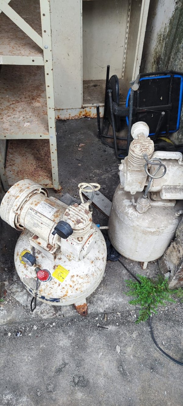 02 COMPRESSORES DE AR ODONTOLÓGICOS SCHULZ, COM MOTOR WEG DE MEIO CV, 02 ESTANTES DE AÇO, 01 ESTANTE DE MADEIRA, 01 UNIDADE CONDENSADORA DE 18.000 BTUS, 03 UNIDADES DE AR-CONDICIONADO SPLINTER 18.000 BTUS, 1 AR-CONDICIONADO DE JANELA DE 12.000 BTUS.
