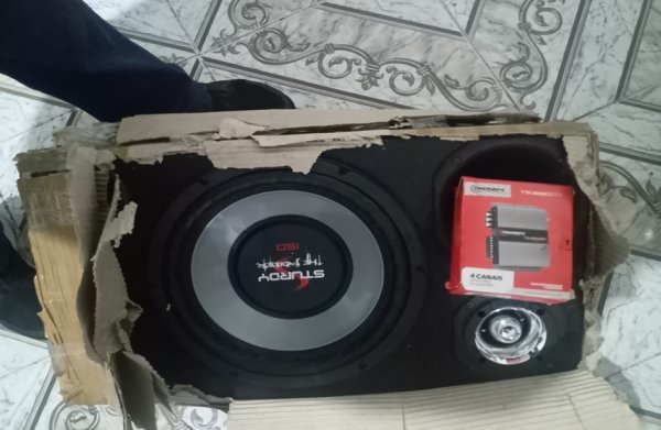 1 CAIXA DE SOM ALTO FALLANTE 12 SUB WOOFER 150W RMS+ AMPLIFICADOR TS 250X4 DRIVER FENOLICO 100W RMS SUPER TWEETER PRETO RMS TS 250X4 DR PRETO // 4 RÁDIOS COMUNICADOR BAOFENG BAOFENG 7775
