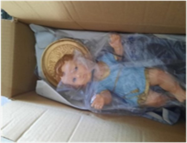 3 IMAGEM MENINO JESUS COM AUREOLA LED 25CM DIVERSOS // 1 IMAGEM DE JESUS RESSUCITANDO // 1 MALA INFANTIL DE RODAS NÃO IDENTIFICADA MINICRAFIT AZUL