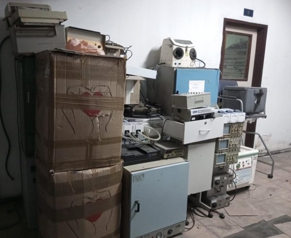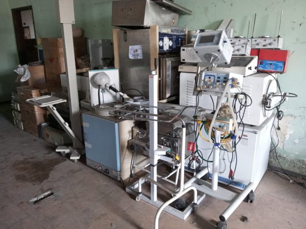 DIV. EQUIPAMENTOS HOSPITALARES: AUTOCLAVE, ESTUFAS, VENT. PULMONAR INTERMED, ESPECTROFOTOMETRO, MÁSCARAS, OSCILOSCOPIOS, DVR, SWITCHES, VISCOCIMETRO, PEÇAS DE AÇO E 02 RECIPIENTES DE PLÁSTICO.