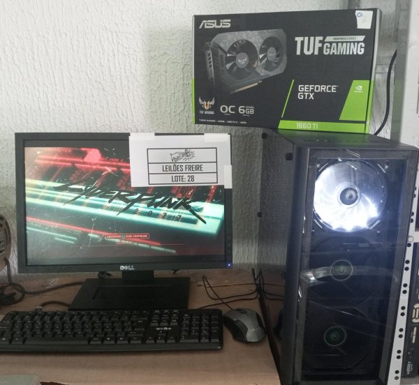 01 PC GAMER EM FUNCIONAMENTO COM PROCESSADOR INTEL XEON X99 E5-2689 DE 8 NÚCLEOS E 16 THREADS DE 2,6 GHZ, PLACA X99 LGA 2011 COM 8 GB DE MEMORIA, SSD DE 120GB E 500GB DE HD, COM 1 PLACA DE VIDEO GTX 1660 TI TUF DA ASUS DE 6GB, E FONTE DE 500W REAL E UM MONITOR 19 COM TECLADO E MOUSE.