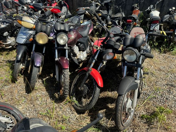 35A-HONDA/CG 150 TITAN KS, ANO/MOD 2005/2006, COR PRATA (SUCATA C/MOTOR APROVEITÁVEL). || 35B-HONDA/CG150 FAN ESDI, ANO/MOD 2010/2011, COR PRATA (SUCATA C/MOTOR APROVEITÁVEL). || 35C-HONDA/CG 125 FAN KS, ANO/MOD 2010/2010, COR PRETA (SUCATA C/MOTOR APROVEITÁVEL). || 35D-HONDA/C100 BIZ ES, ANO/MOD 1999/2000, COR VERMELHA (SUCATA C/MOTOR APROVEITÁVEL). || 35E-HONDA/CG 125 FAN, ANO/MOD 2007/2007, COR VERMELHA (SUCATA C/MOTOR APROVEITÁVEL).